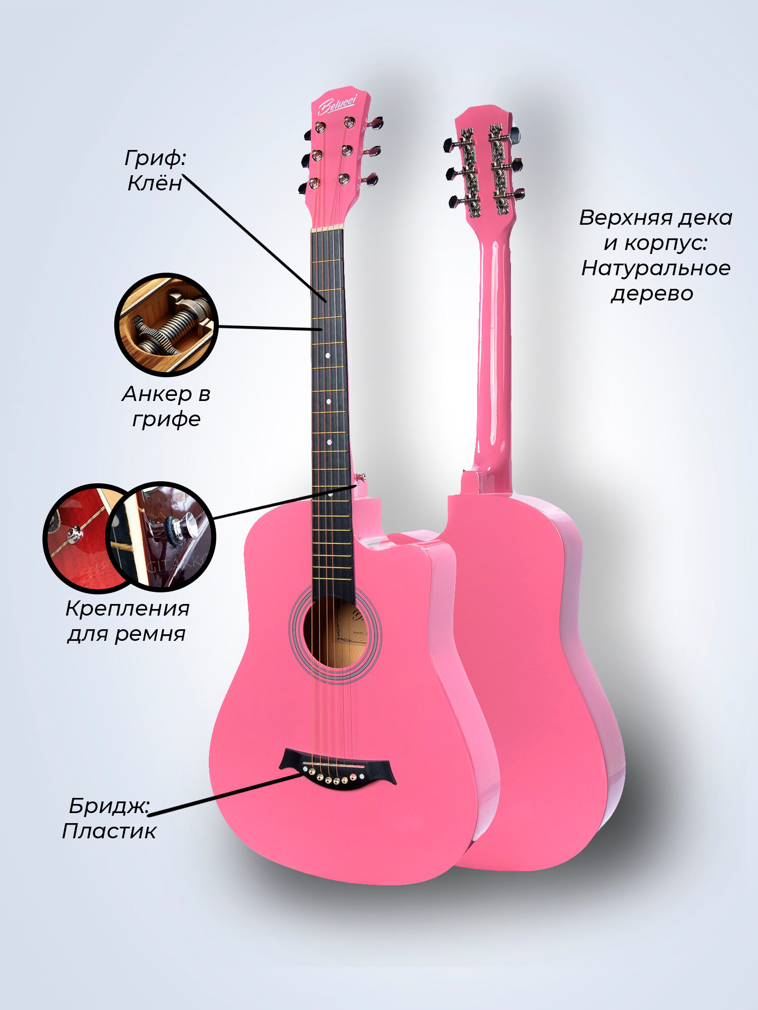 Купить Гитара акустическая 38" Розовая (Инструмент начинающего музыканта, Belucci BC3810 PI)
