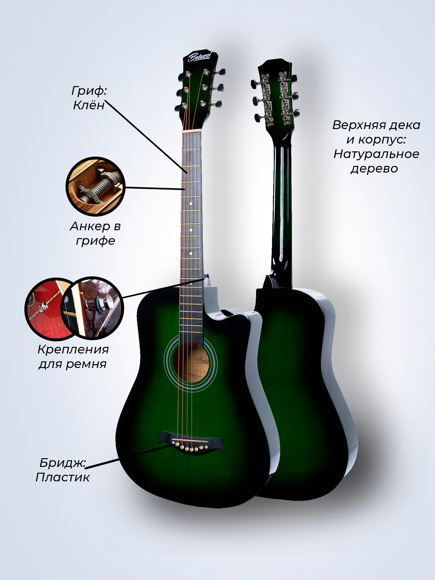 СохранитьГитара акустическая 7/8 Belucci BC3810 GR, зеленая, глянец,38"дюймов интересное: