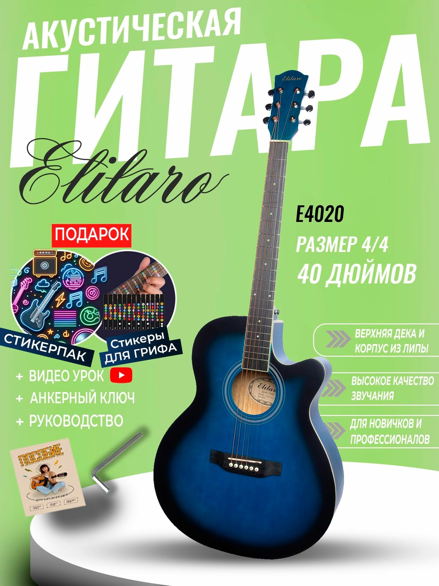 Купить Гитара акустическая 40" Синяя (Инструмент начинающего музыканта, Elitaro E4020 BLS)