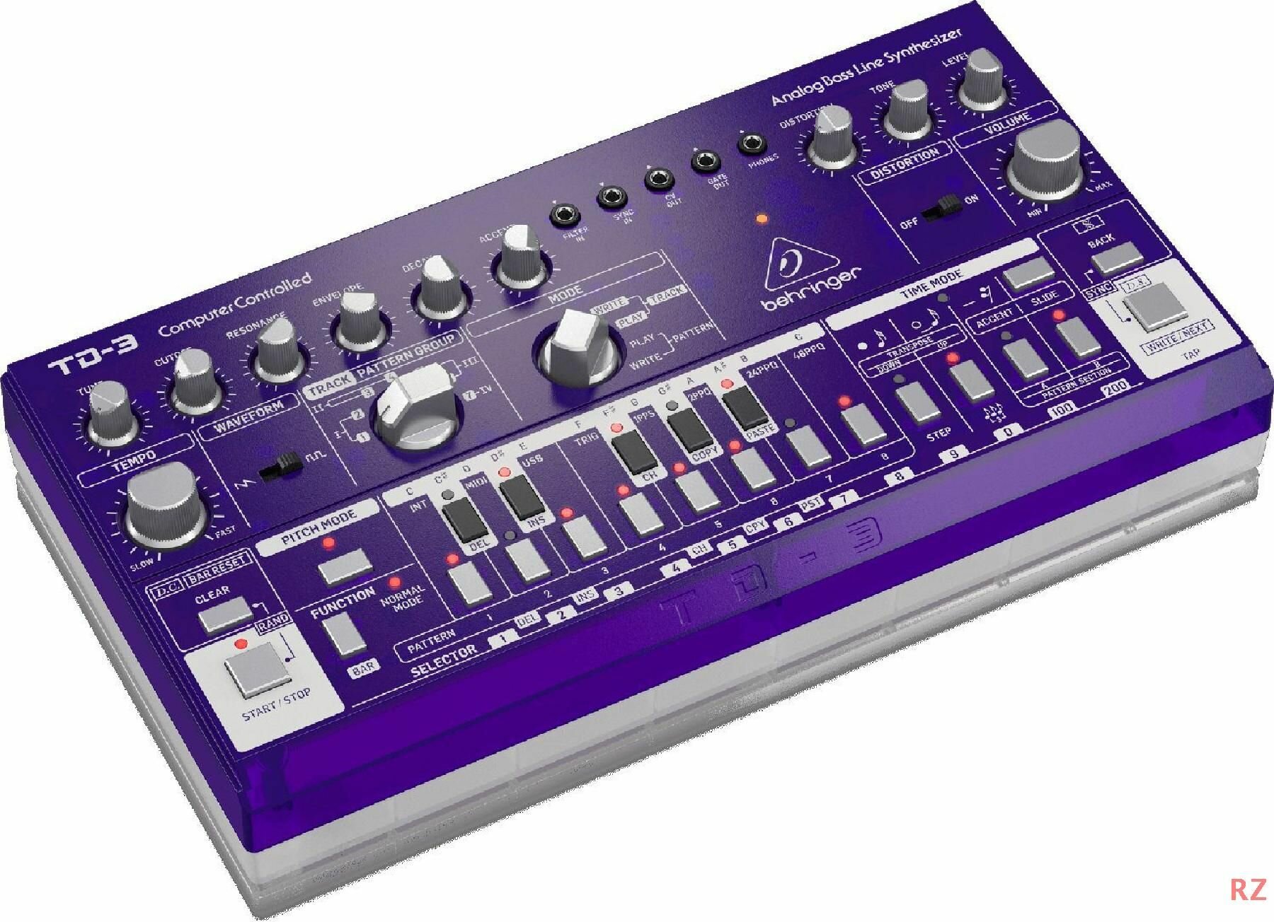 Купить BEHRINGER TD-3-GP Аналоговый басовый синтезатор с 16-ступенчатым секвенсором и фильтрами VCO, VCF и VCA, прозрачный фиолетовый