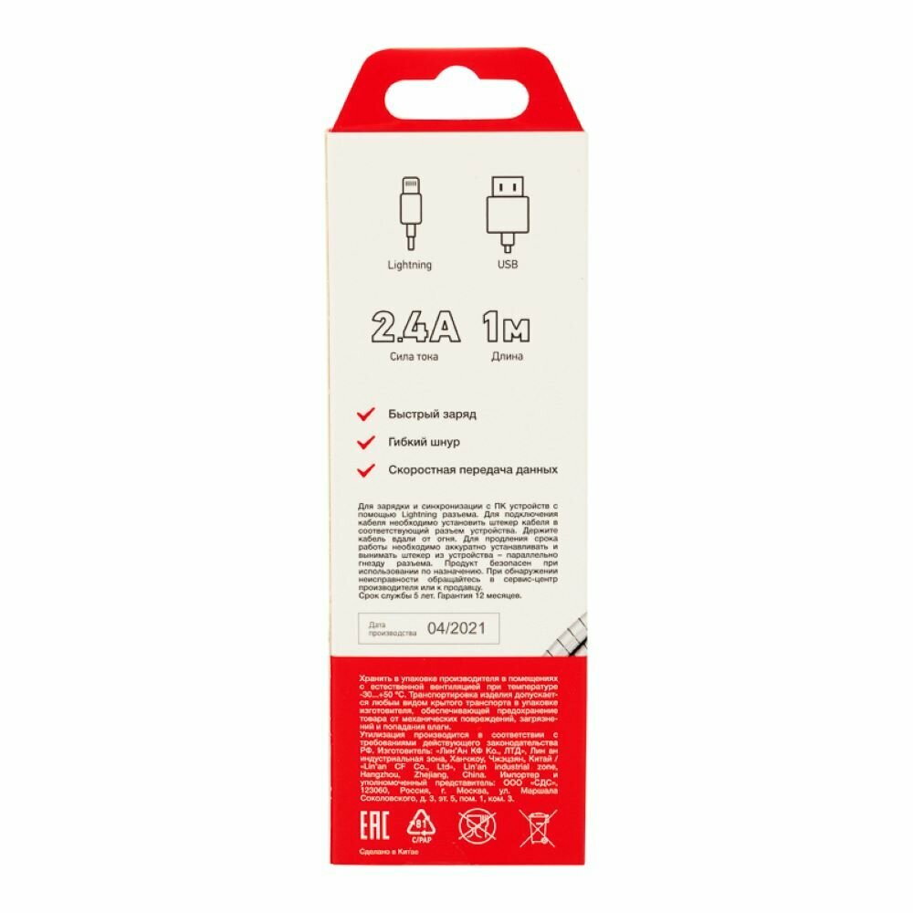 Кабель REXANT для зарядки Apple, USB-Lightning, металлическая оплетка, 1 м