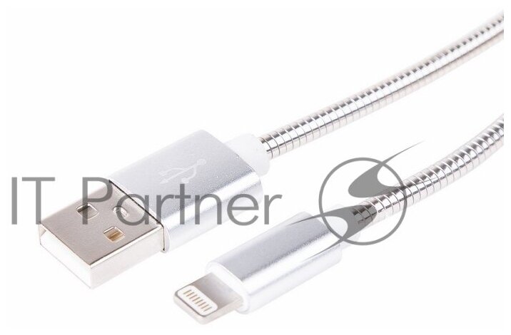 USB кабель для iPhone 5/6/7 моделей, шнур в металлической оплетке, цвет серебристый REXANT 18-4247