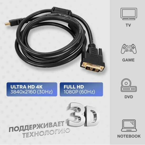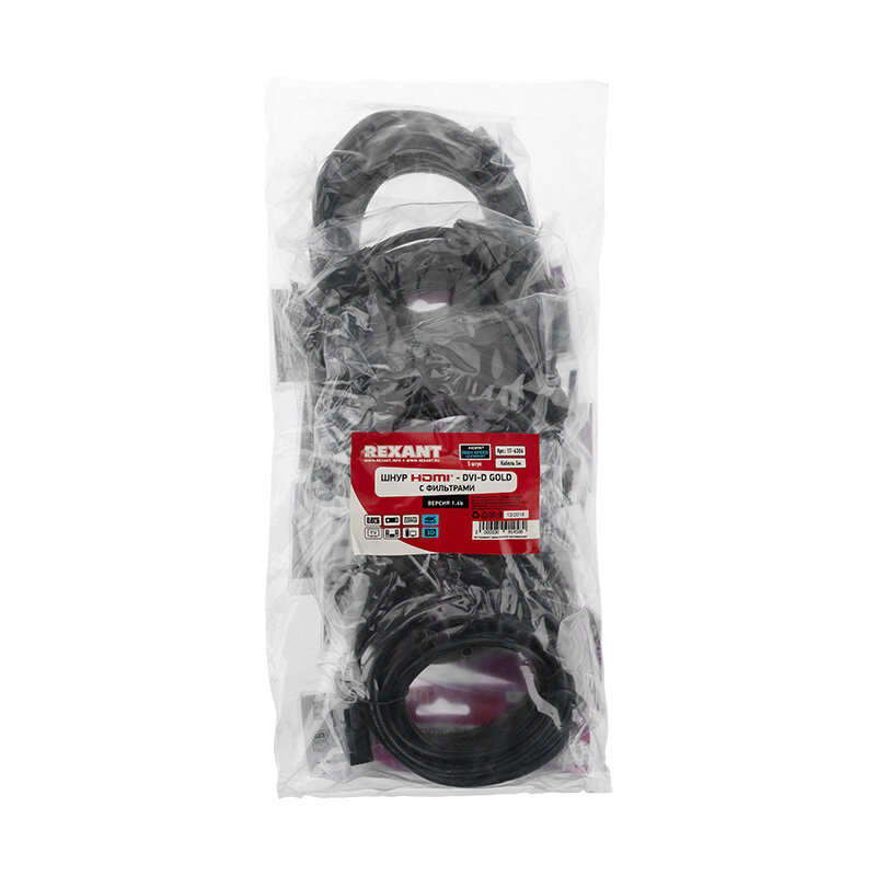 Кабель Rexant HDMI-DVI-D 5 м, с фильтрами, серия Gold интересное: