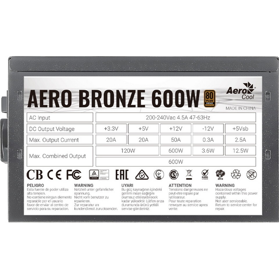 Power Supply AEROCOOL 600 Вт Сертификат 80 PLUS BRONZE PFC Активный 4710562753974