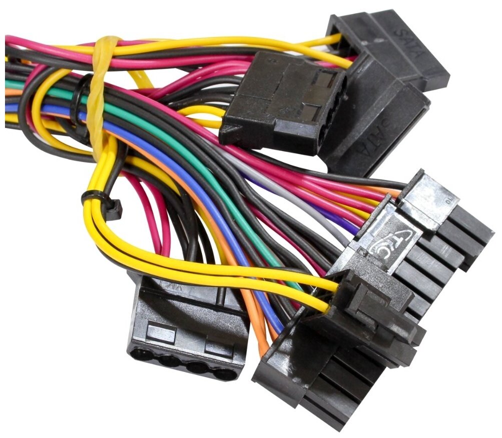 | Минусы: | 2 SATA 2 молекса питания процессора 4-pin я питание материнской платы питание флоппи дисковода и всё больше ничего нету. Тонкие провода меньше миллиметра толщиной коннекторы хлипкие. |