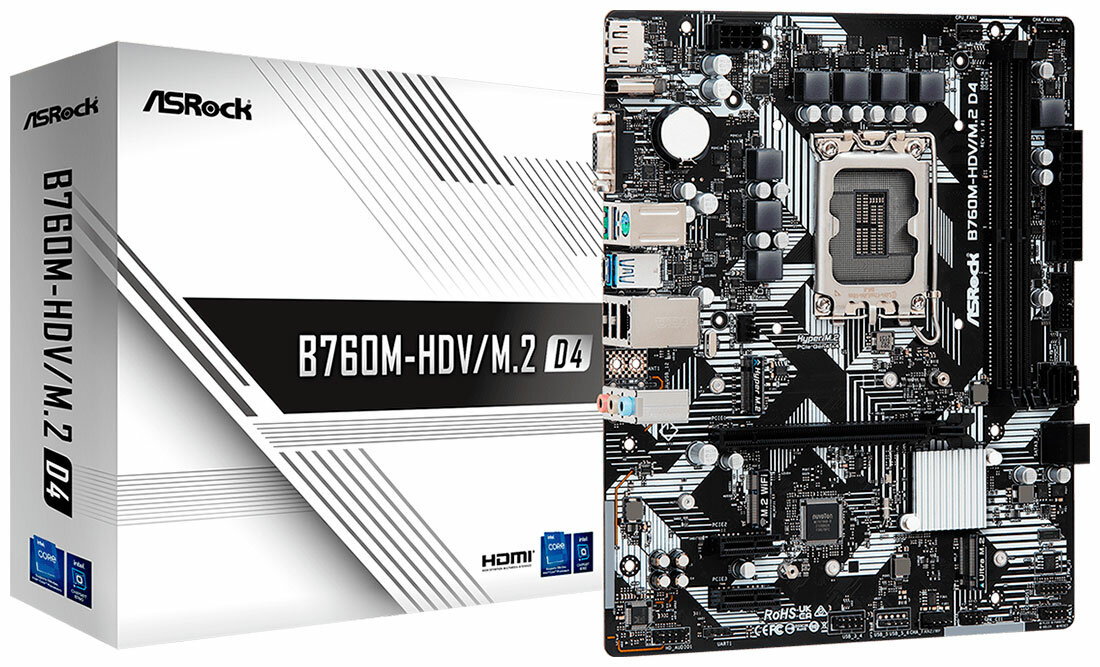 Купить Материнская плата Asrock B760M-HDV M.2 D4 (LGA1700, mATX)