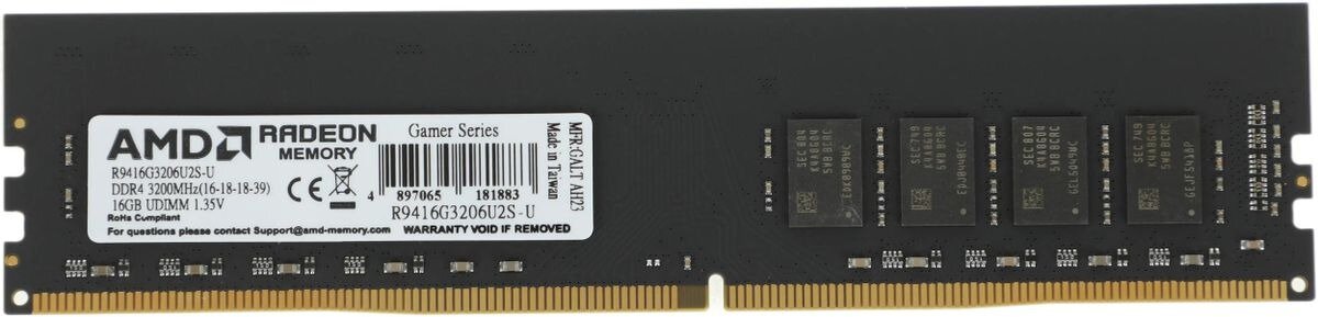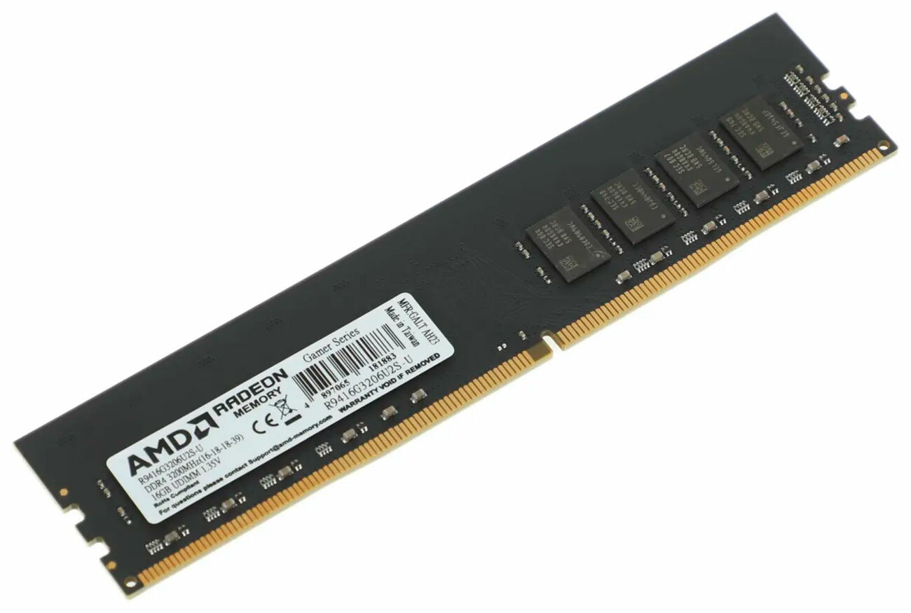 Оперативная память AMD R9 DDR4 - 16GB, 3200 МГц, DIMM, CL16 (r9416g3206u2s-u)