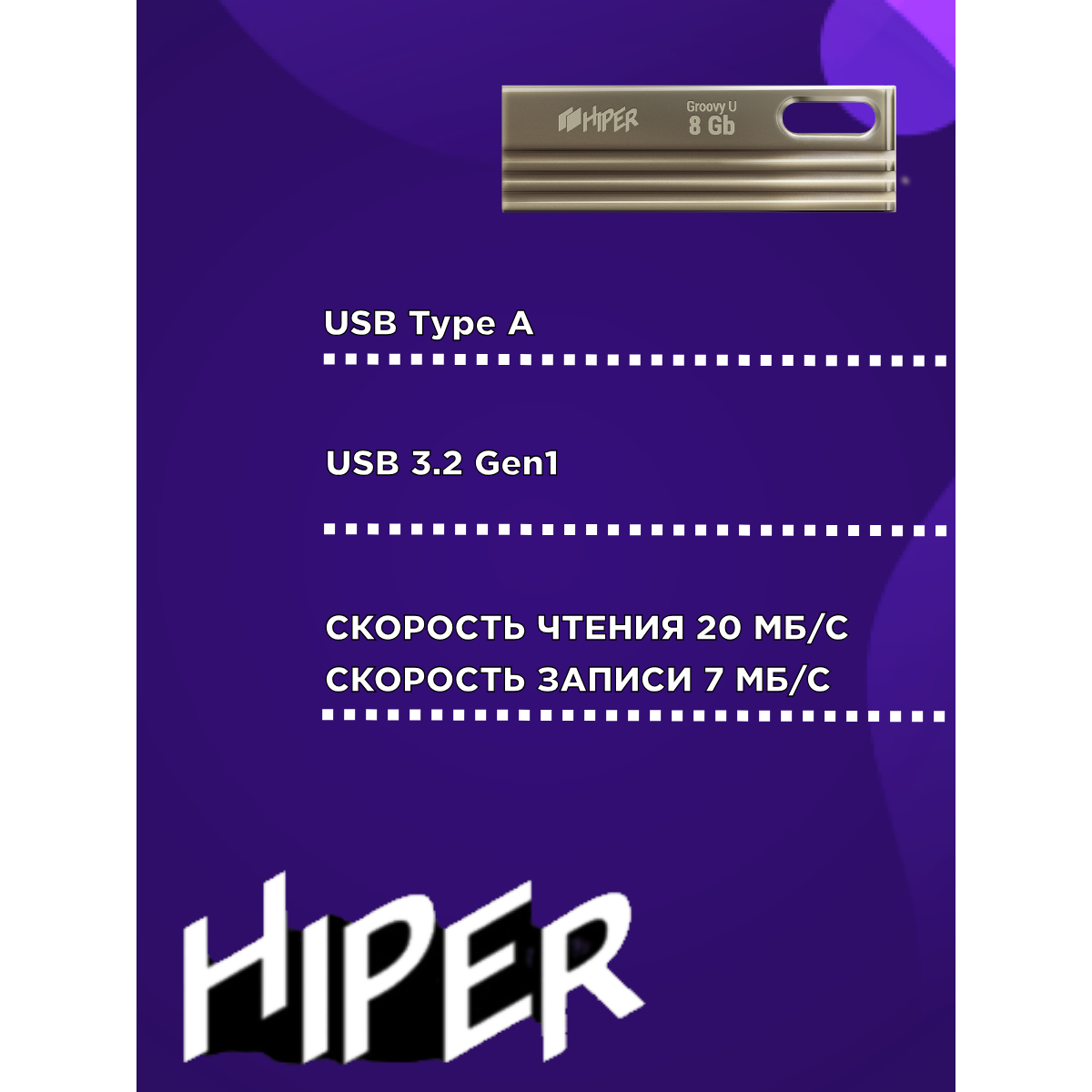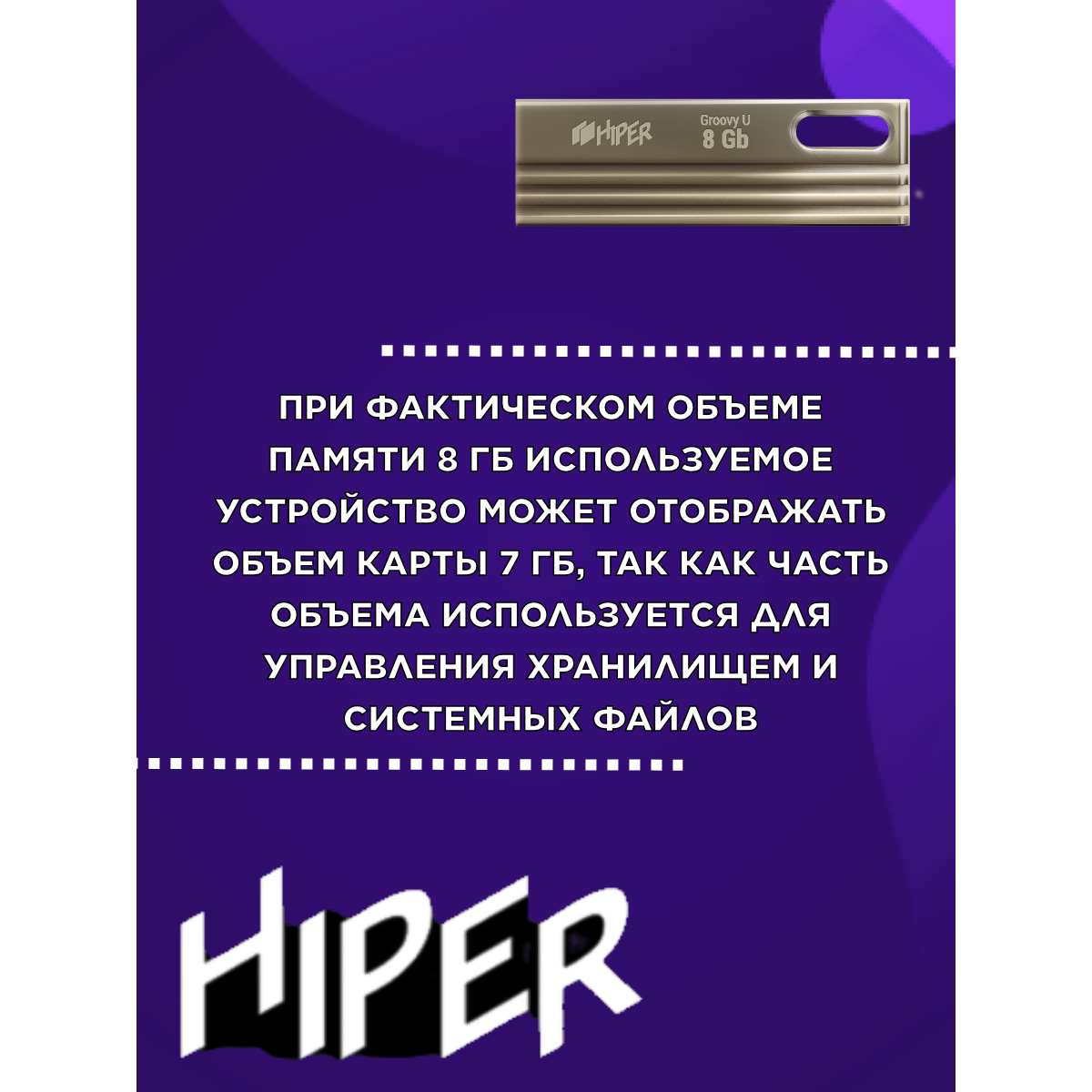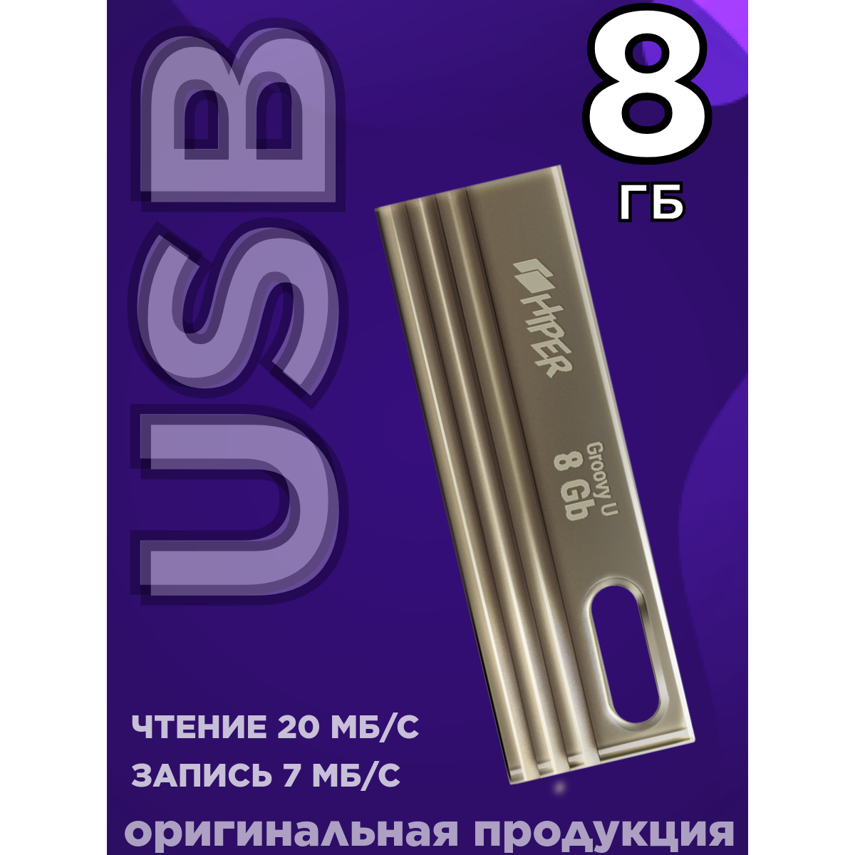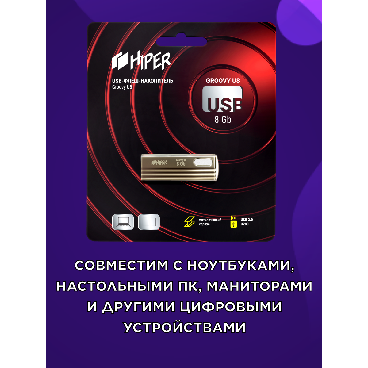 Флешка 8Gb Hiper Groovy U USB 2.0, сплав цинка, серебристый, HI-USB28GBU280S интересное: