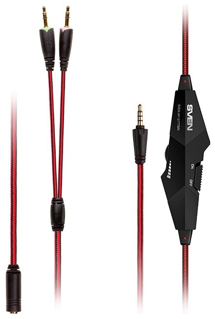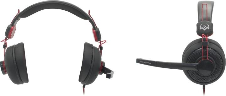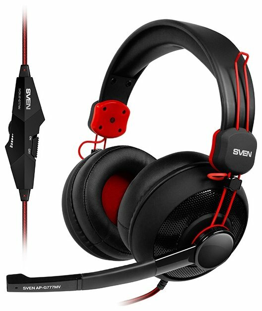 SVEN AP-G777MV Игровые наушники с микрофоном черно-красные (40 мм, мини-джек (стерео) O 3,5 мм (4 pin) или 2*3,5 мм (3 pin))