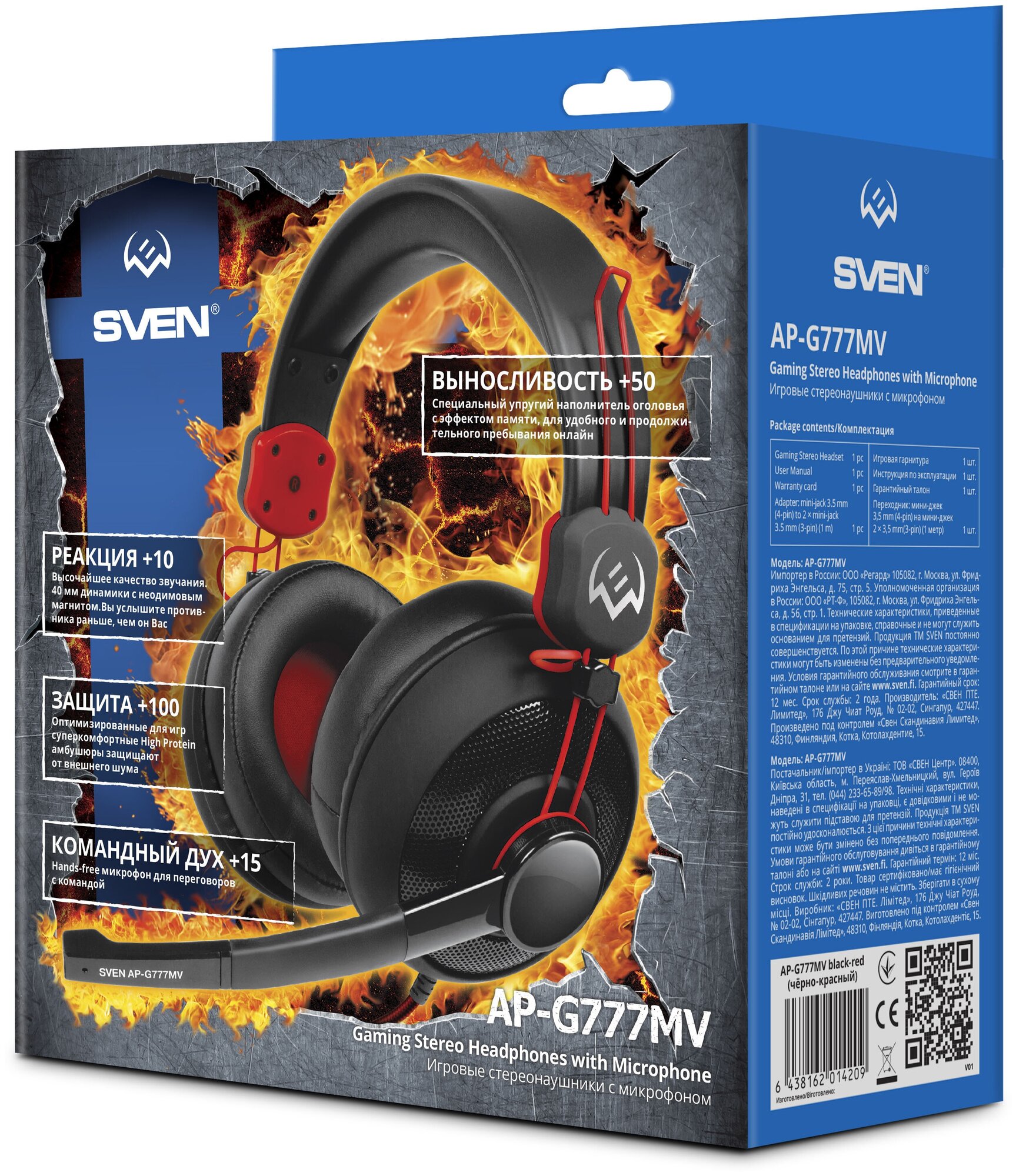 Наушники SVEN AP-G777MV, черный-красный (1/20)