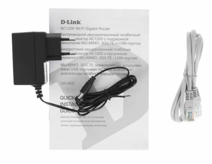Роутер WiFi D-Link DIR-825/RU/R1, беспроводной двухдиапазонный гигабитный маршрутизатор AC1200 Wave 2 с поддержкой MU-MIMO, 3G/LTE и USB-портом черный