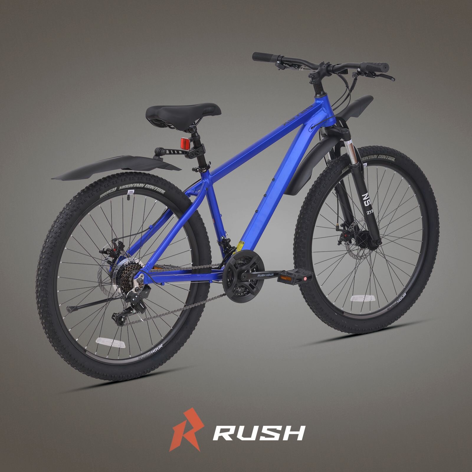 Купить Велосипед алюминиевый взрослый горный 27,5" RUSH HOUR XS 725 21 скорость синий рама 18" рост 165-180 см. скоростной спортивный с амортизацией переключатель SHIMANO дисковые тормоза
