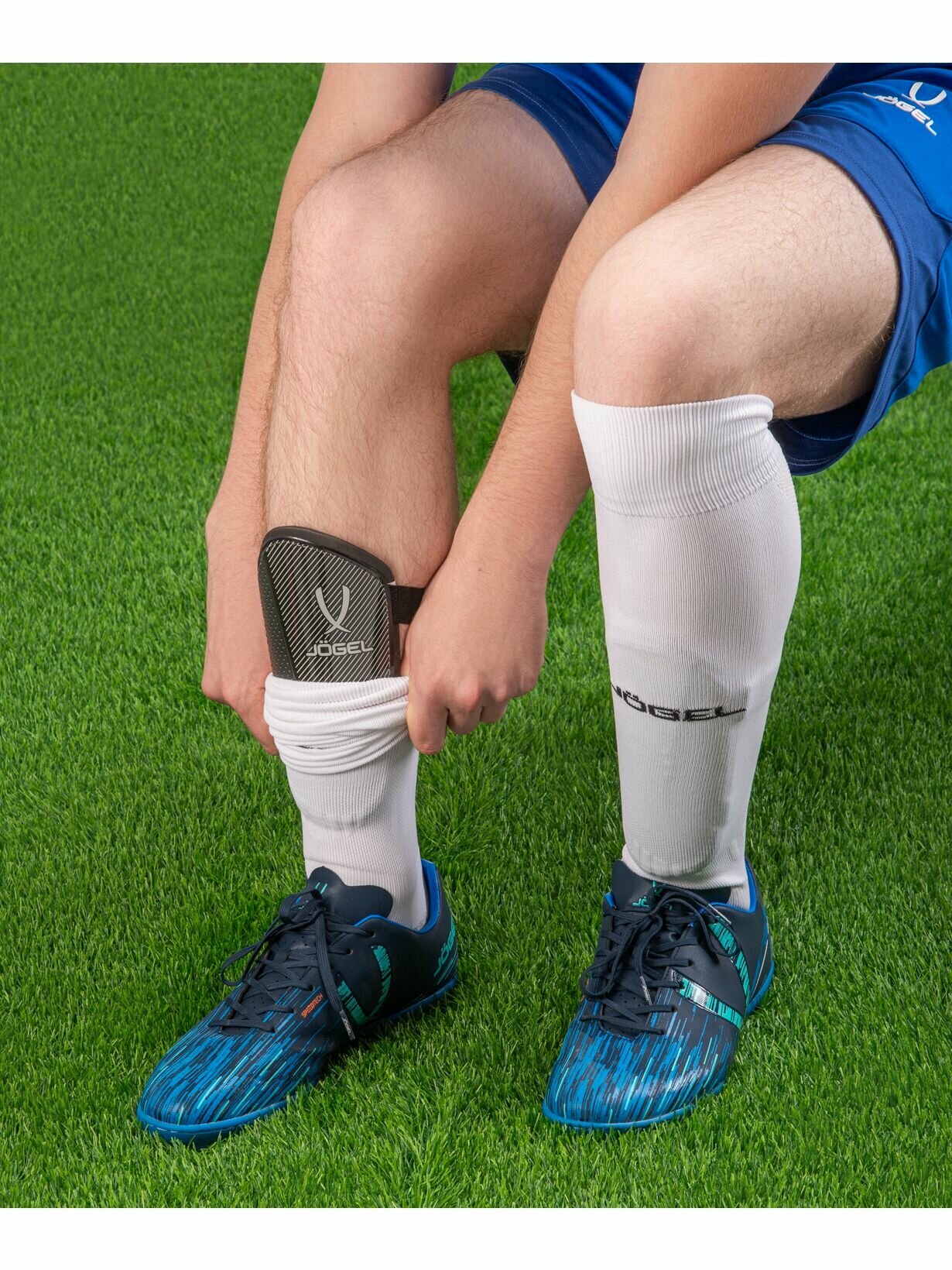 Щитки футбольные Jogel с двойным ремешком, размер L, цвет синий