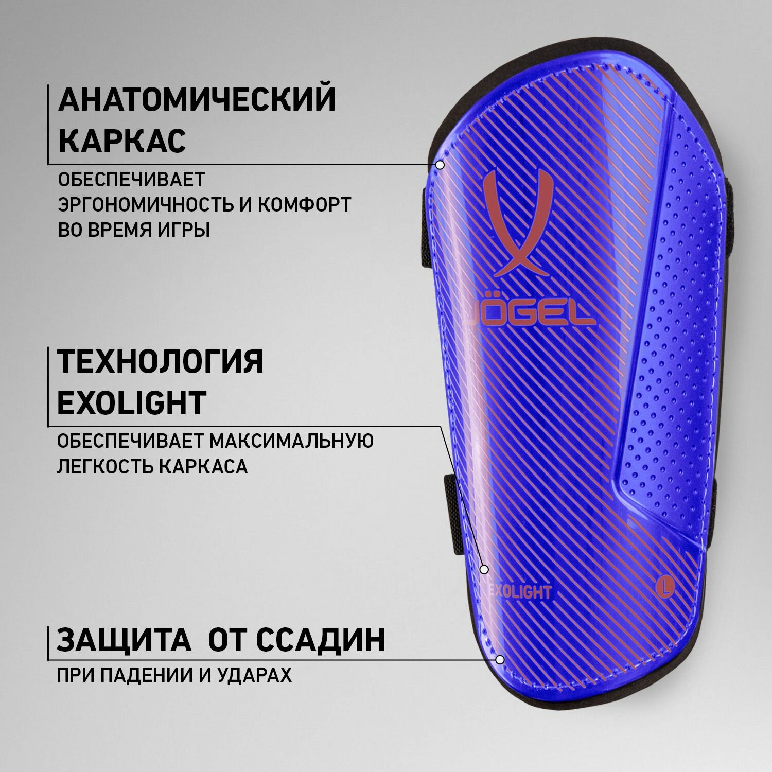 Купить Щитки футбольные Jogel с двойным ремешком, размер L, цвет синий