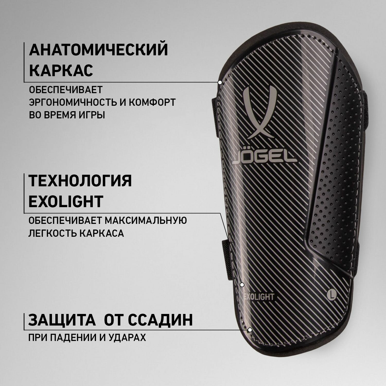 Щитки футбольные Jogel с двойным ремешком, размер L, цвет черный