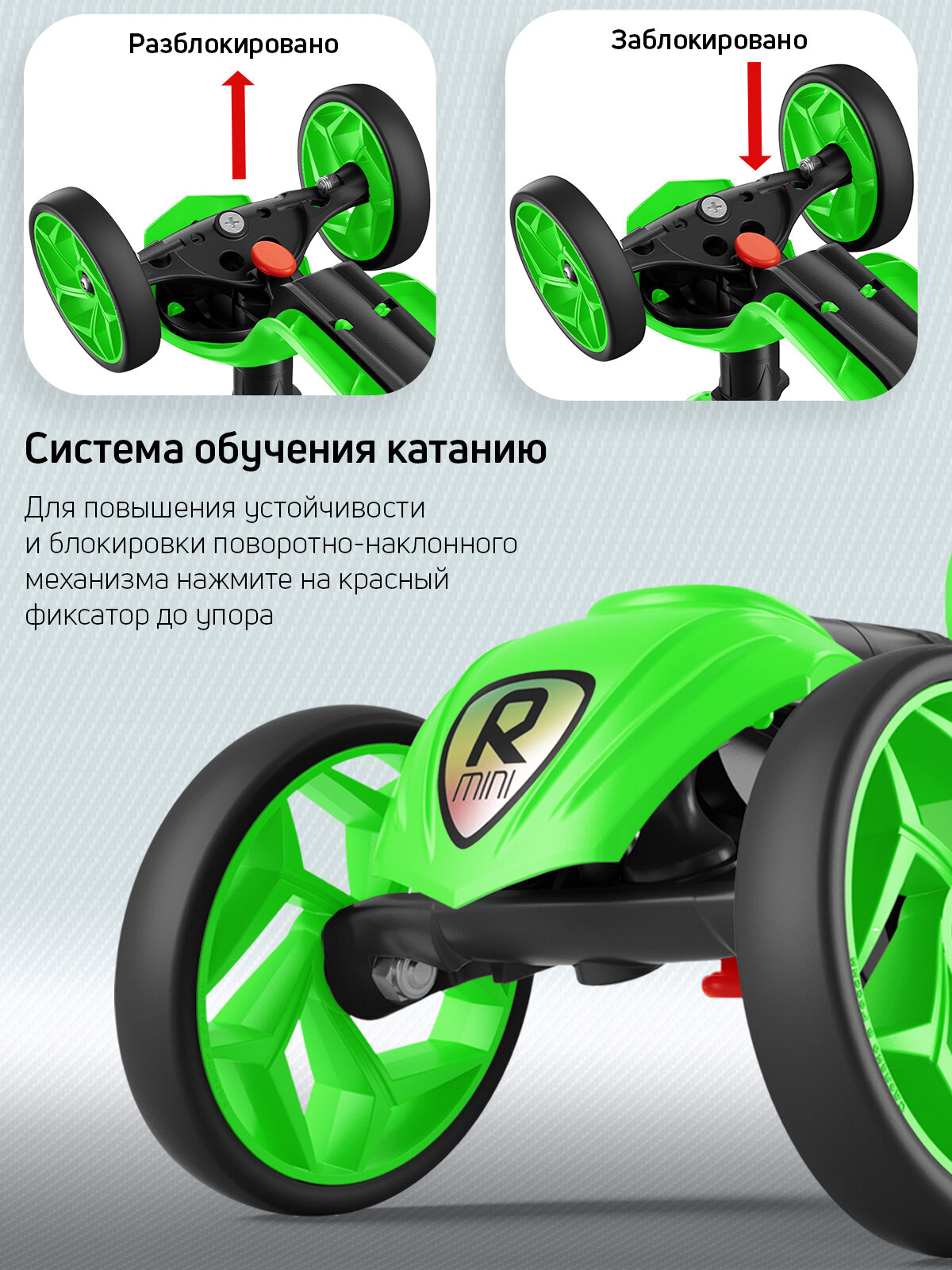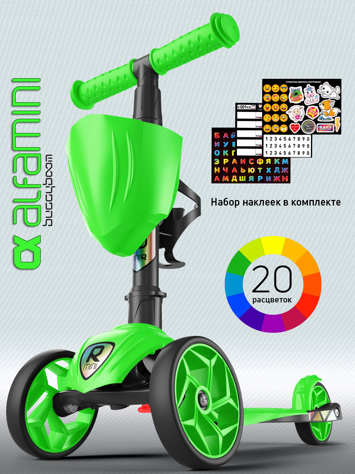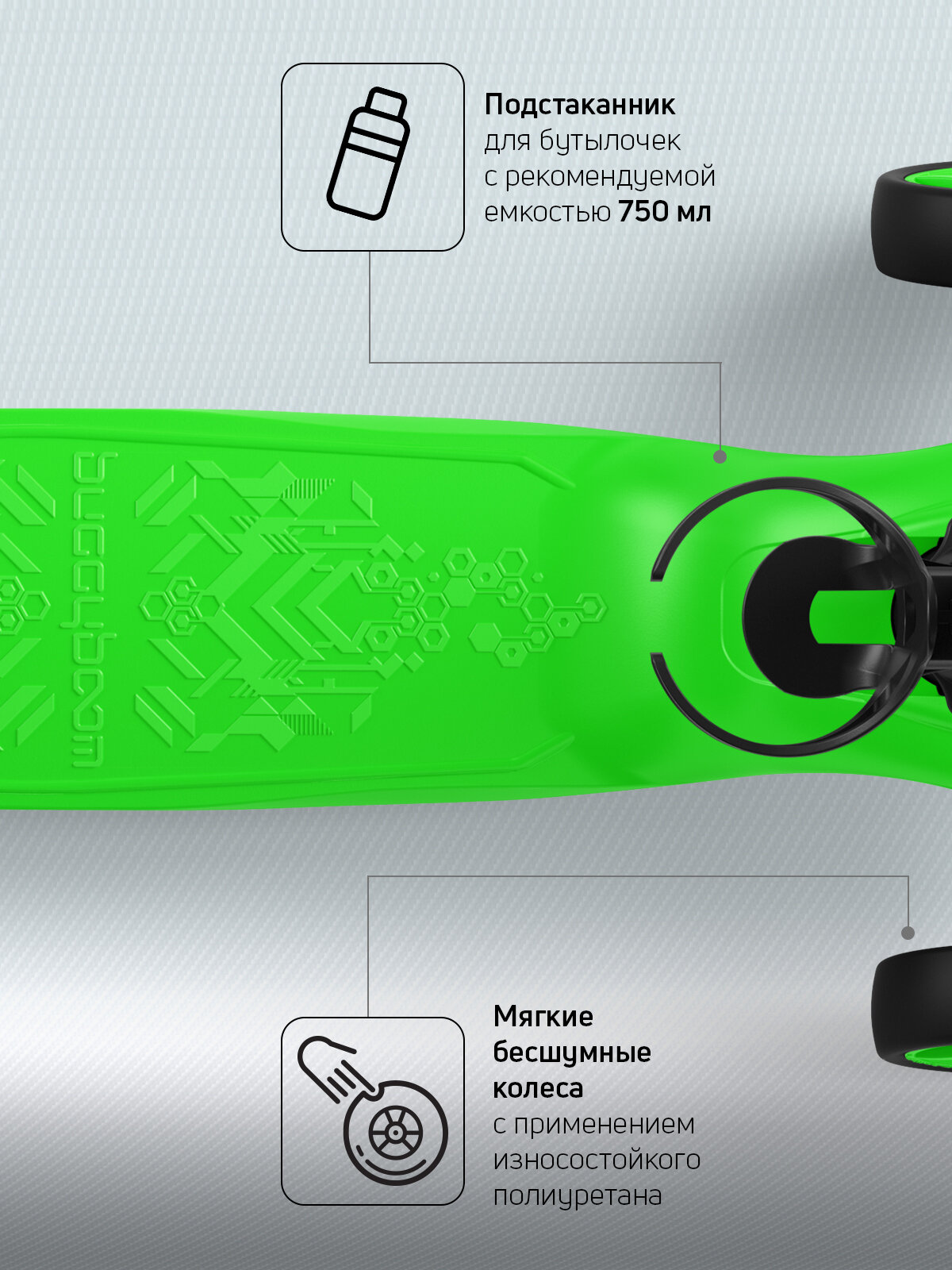 Cамокат детский трехколесный BuggyBoom Alfa Mini XR с корзинкой и подстаканником для бутылок, зеленый флюр 004-8061