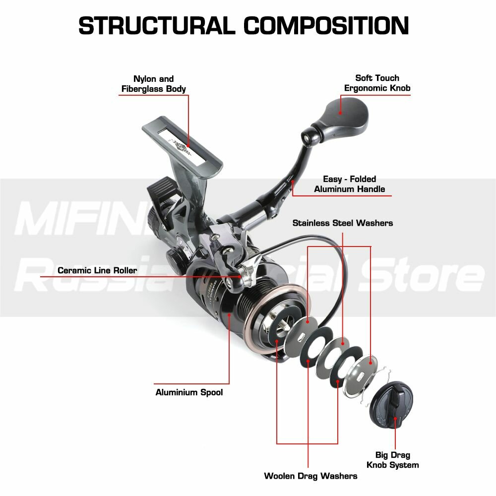 Катушка рыболовная Mifine DARKAR 2000F (4 подшипника) новинка 2022 года / Для спиннинга / Безынерционная / Для фидера / Ловля щуки