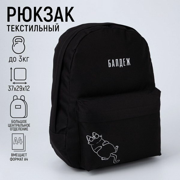 Рюкзак молодёжный, отдел на молнии, наружный карман, цвет чёрный, Балдёж NAZAMOK 5531880 .