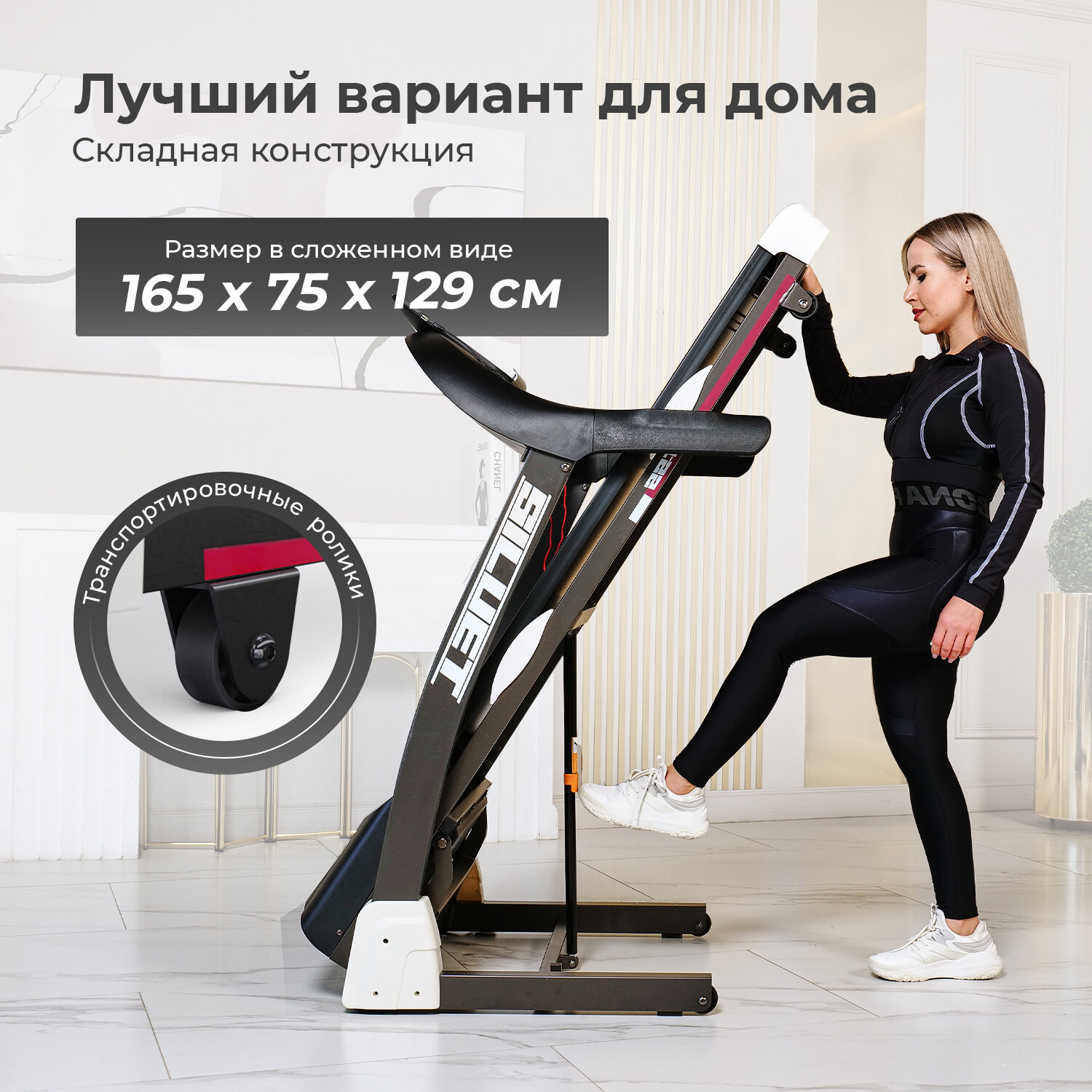 | Плюсы: | Удобный размер, при росте 180 см длинна дорожки удобная, складывается, выдерживает большие веса |