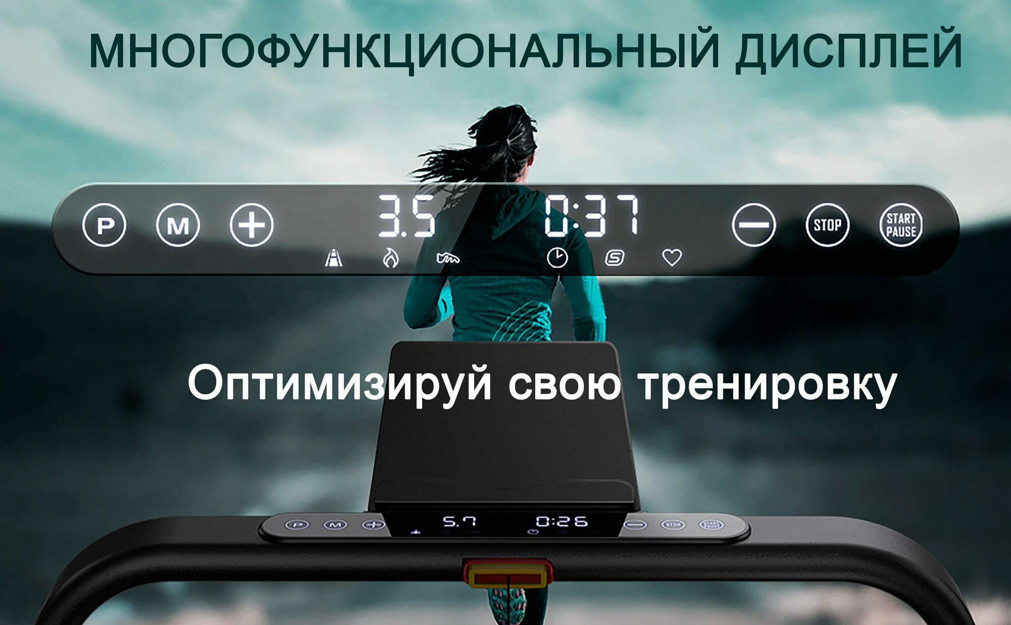 | Показания дисплея | время тренировки в целевой зоне / пройденное расстояние / текущая скорость / пульс / шаги |