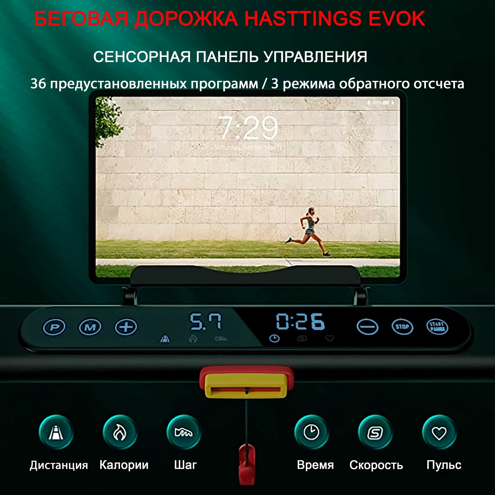 Беговая дорожка Hasttings EVOK - складная/ до 110 кг/ до 300 ккал за 1 ч/суперкомпактная/ 1,5 л.с/ 36 программ/ модуль охлаждения двигателя