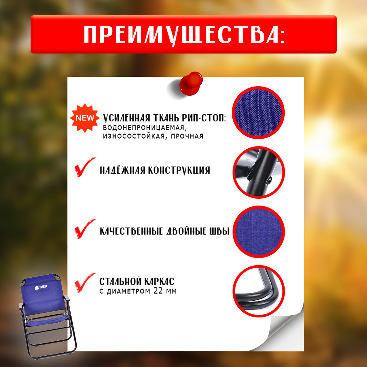 Кресло шезлонг складное туристическое SBX SK-08, выдерживает нагрузку до 110 кг, цвет Синий интересное: