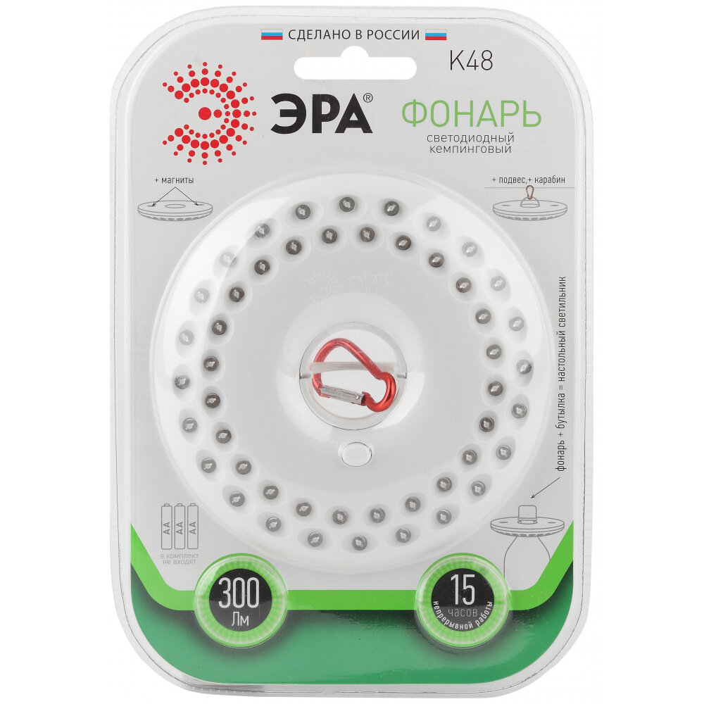 ЭРА K48 Фонарь ЭРА Кемпинг NEW 48xLED, 3xAA, карабин, бл (20/600)
