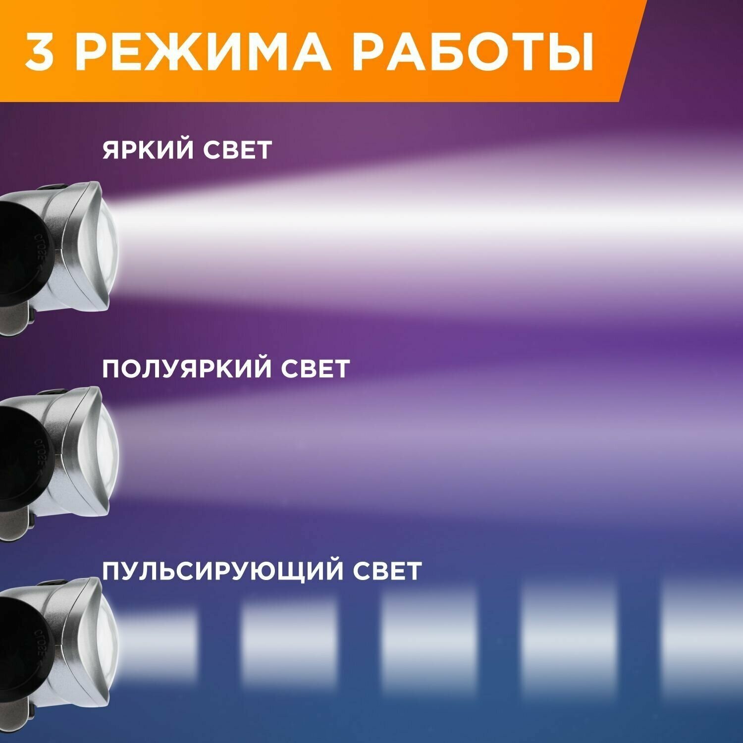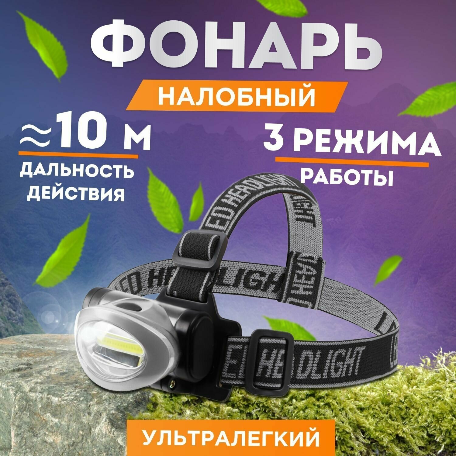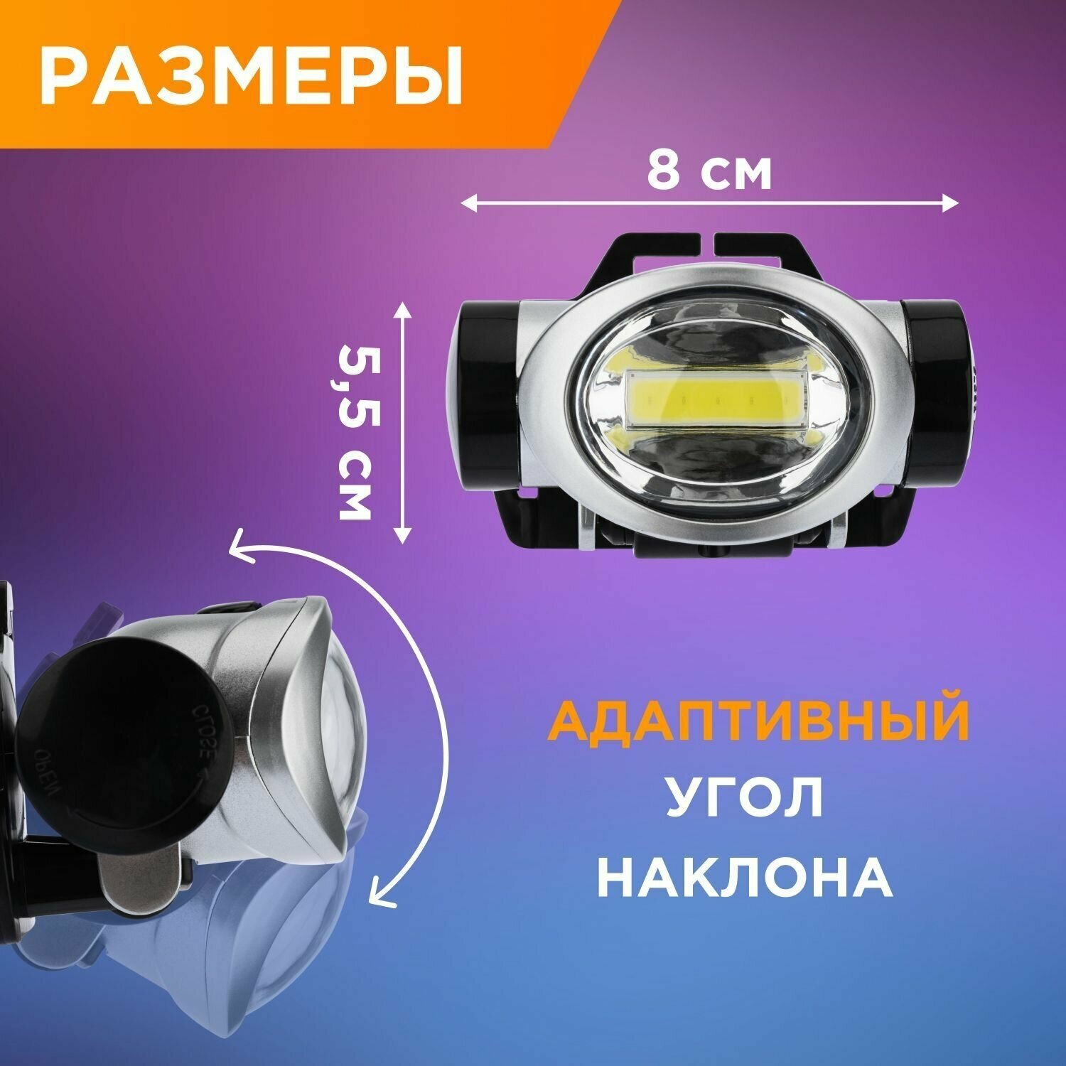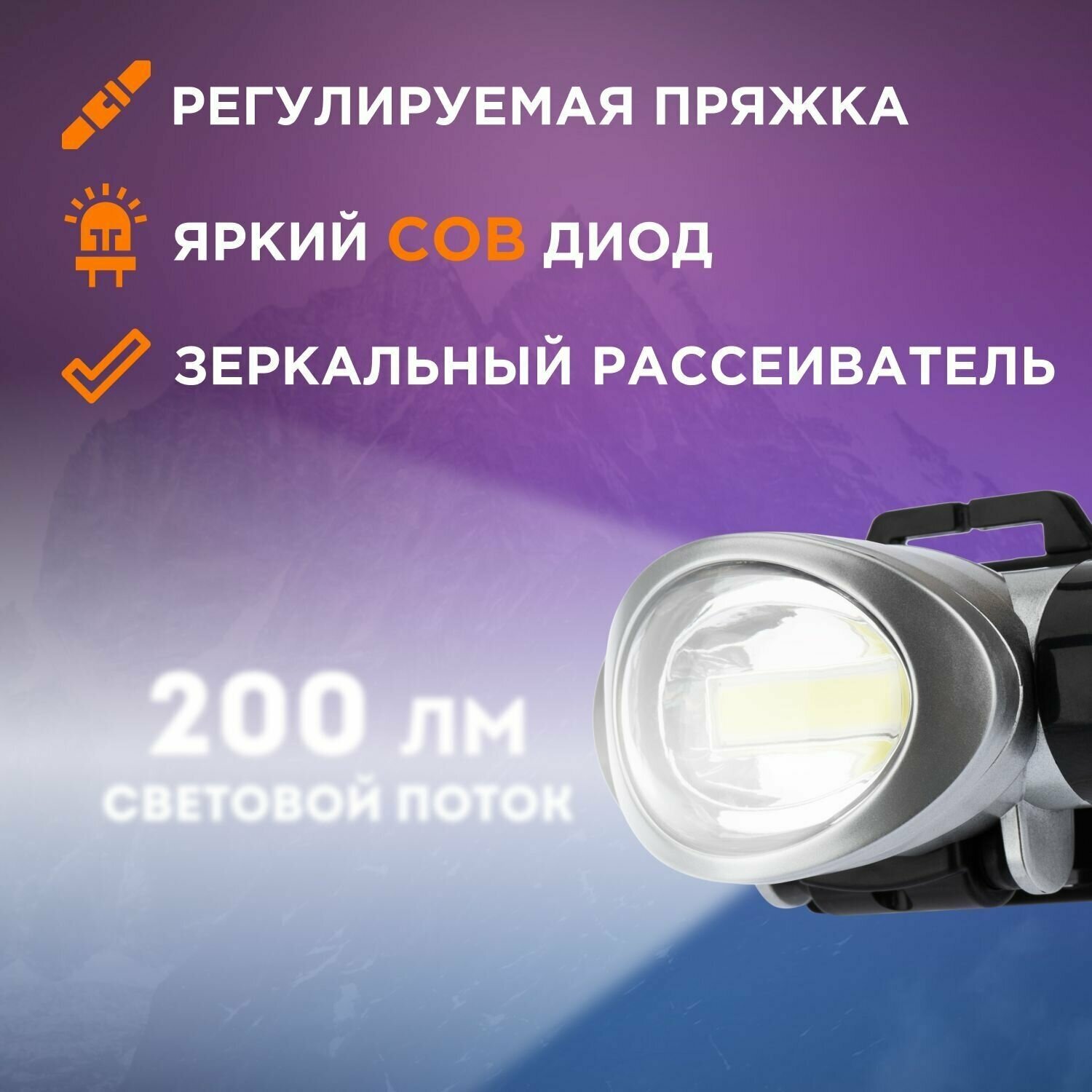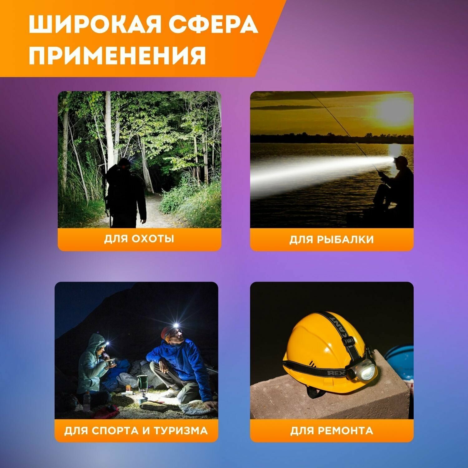 Налобный светодиодный фонарь REXANT СОВ с широким углом освещения, 3 режима