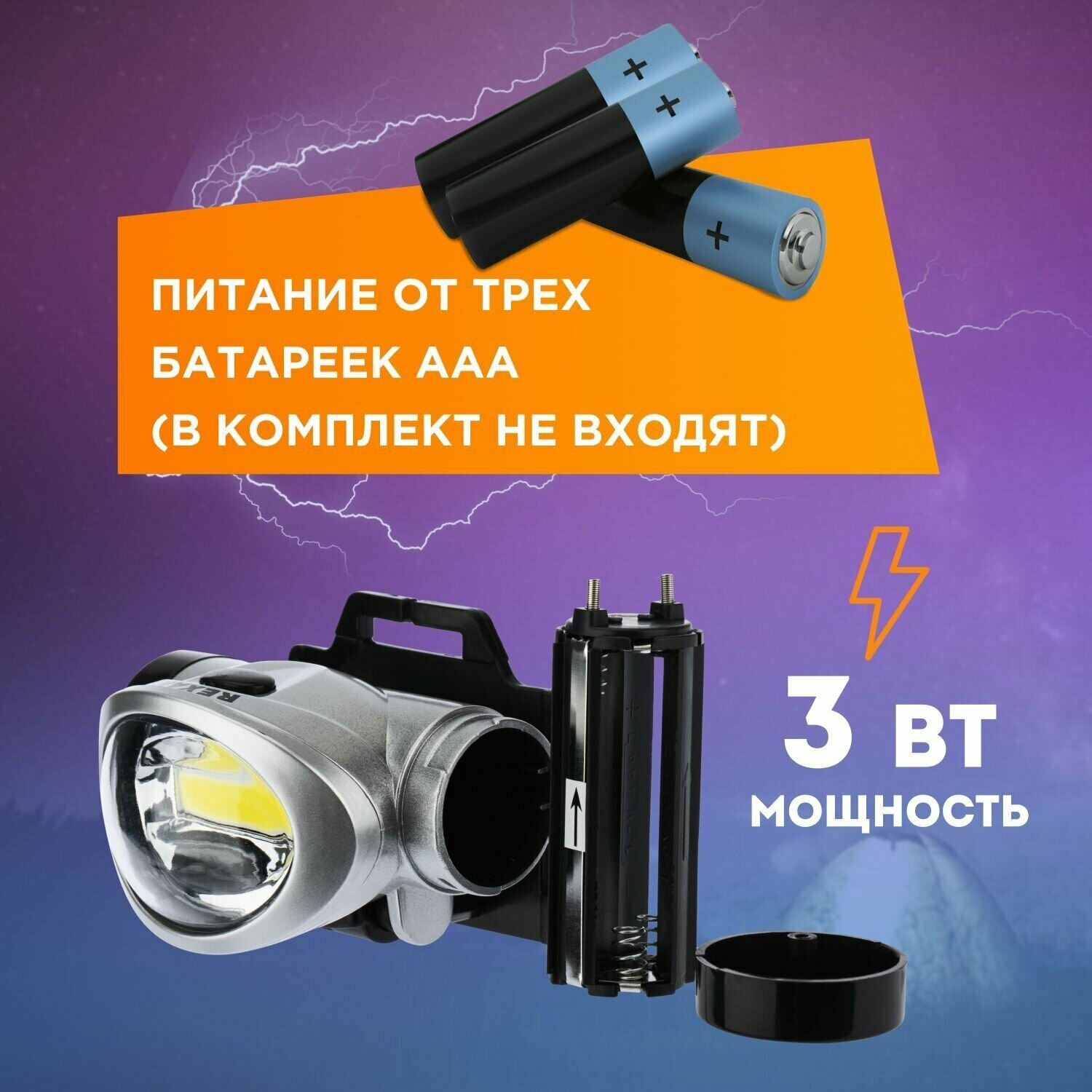 Фонарь налобный REXANT 75-703 питание: 3хААА, 3 Вт, серебристый