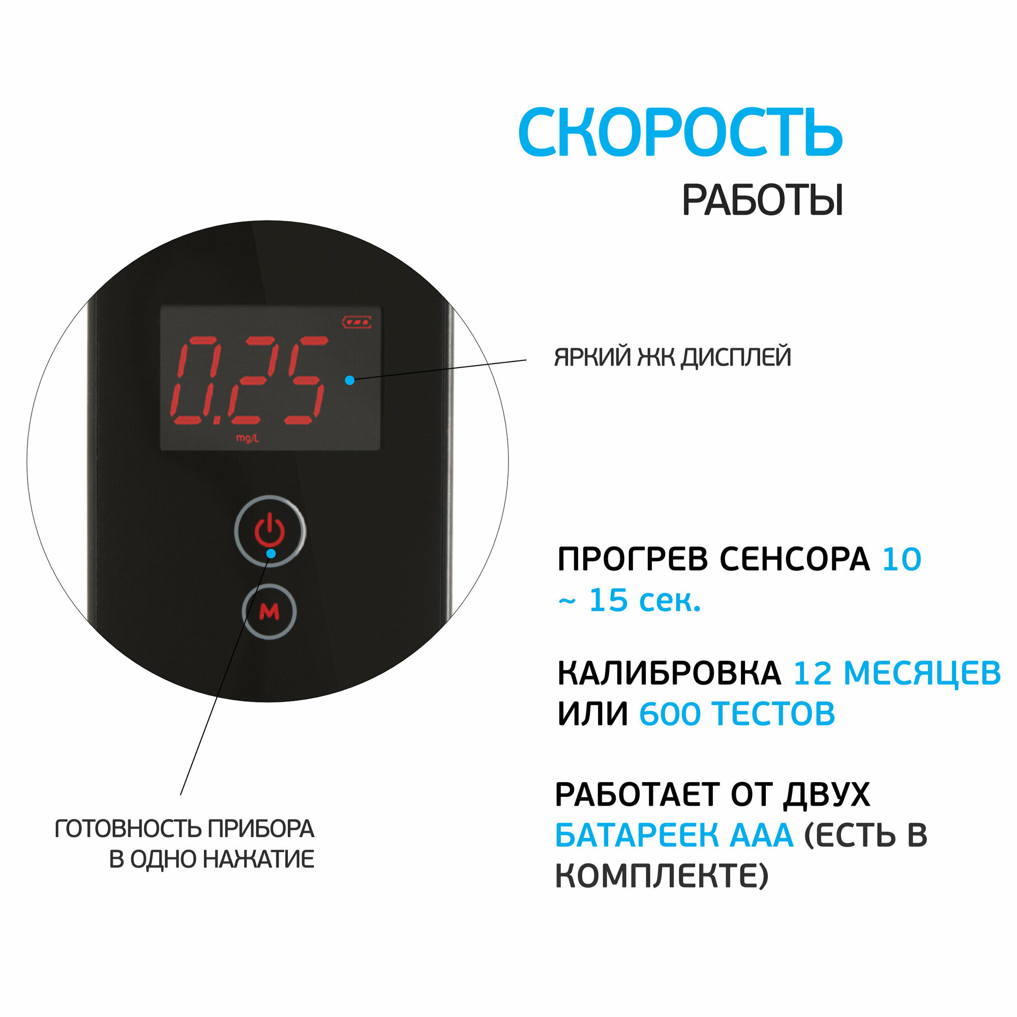 Качественный алкотестер, выбирал долго и не ошибся. Прогревается быстро, показания точные, пользоваться несложно. Хорошая вещь по адекватной цене.