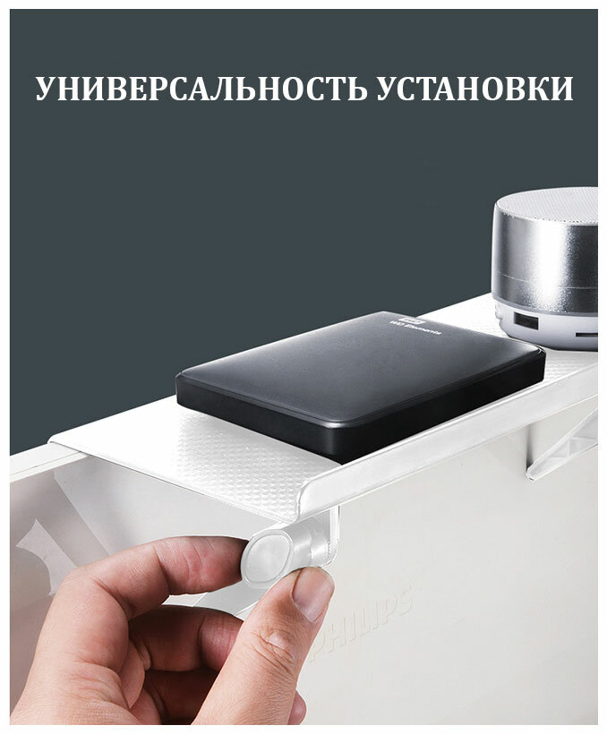 Крепление с возможностью установки сверху на телевизор и монитор любой диагонали/Подставка для телефона/Полка над телевизором/Подставка для планшета/Навесная полка