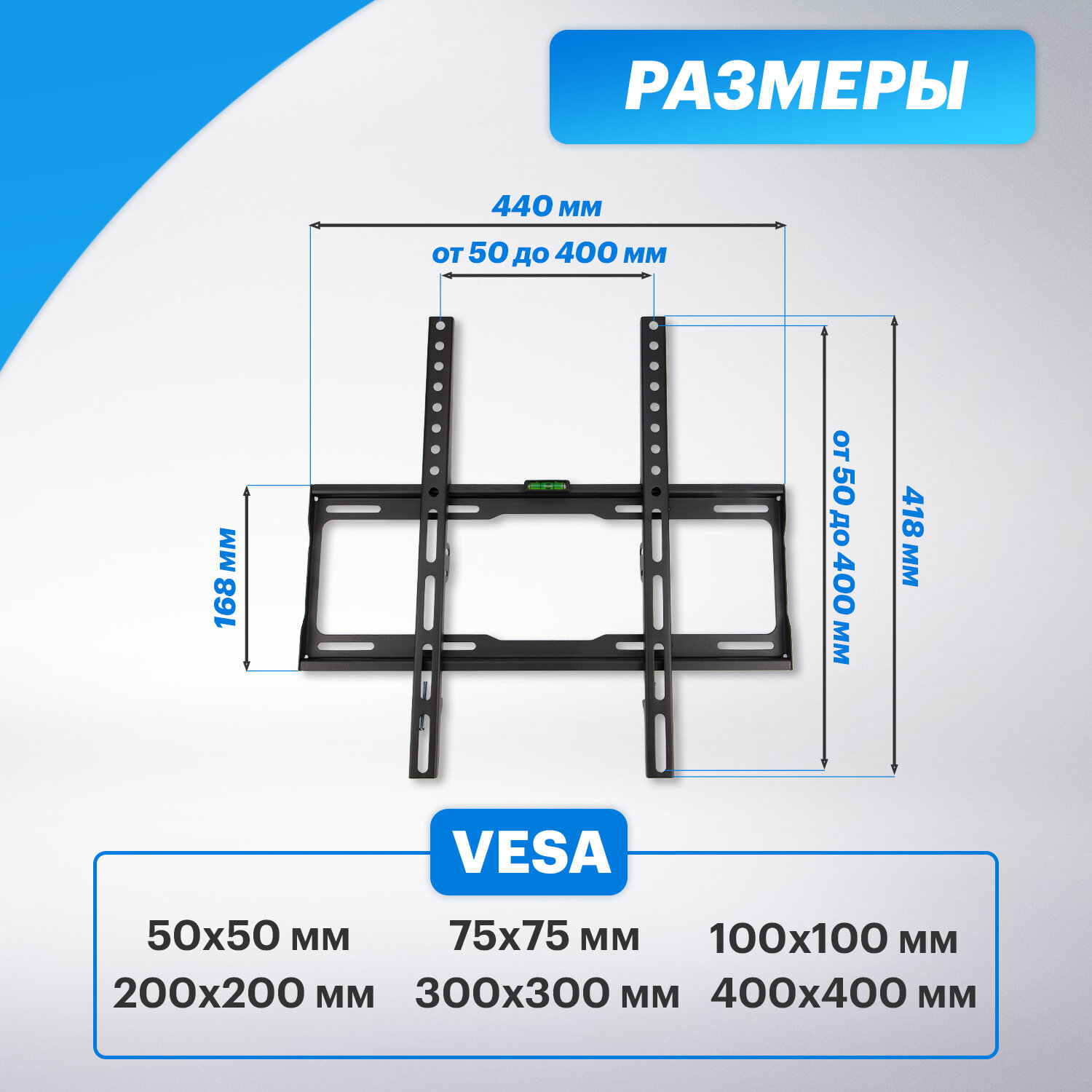 Кронштейн для телевизора настенный фиксированный 30-60 дюйма, ультратонкий, крепления в комплекте