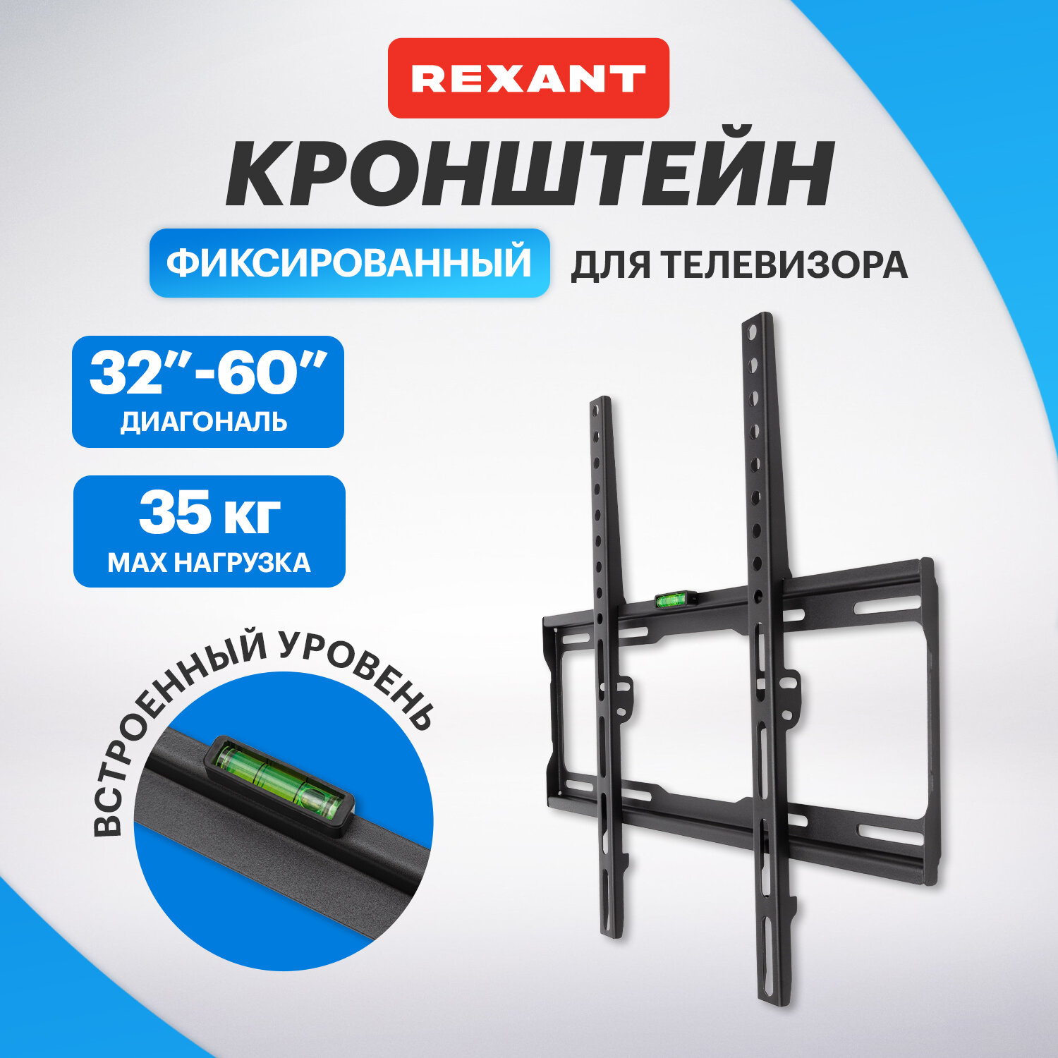 Кронштейны для техники Rexant Кронштейн настенный REXANT 32- 60" (фиксированный, 23 мм, до 35 кг, черный)
