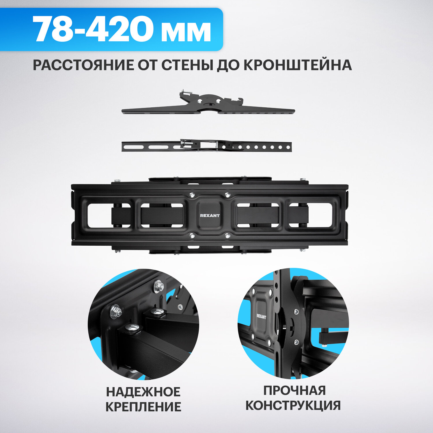 Кронштейн для телевизора настенный поворотный 37-70 дюйма REXANT, двойное колено , крепления в комплекте