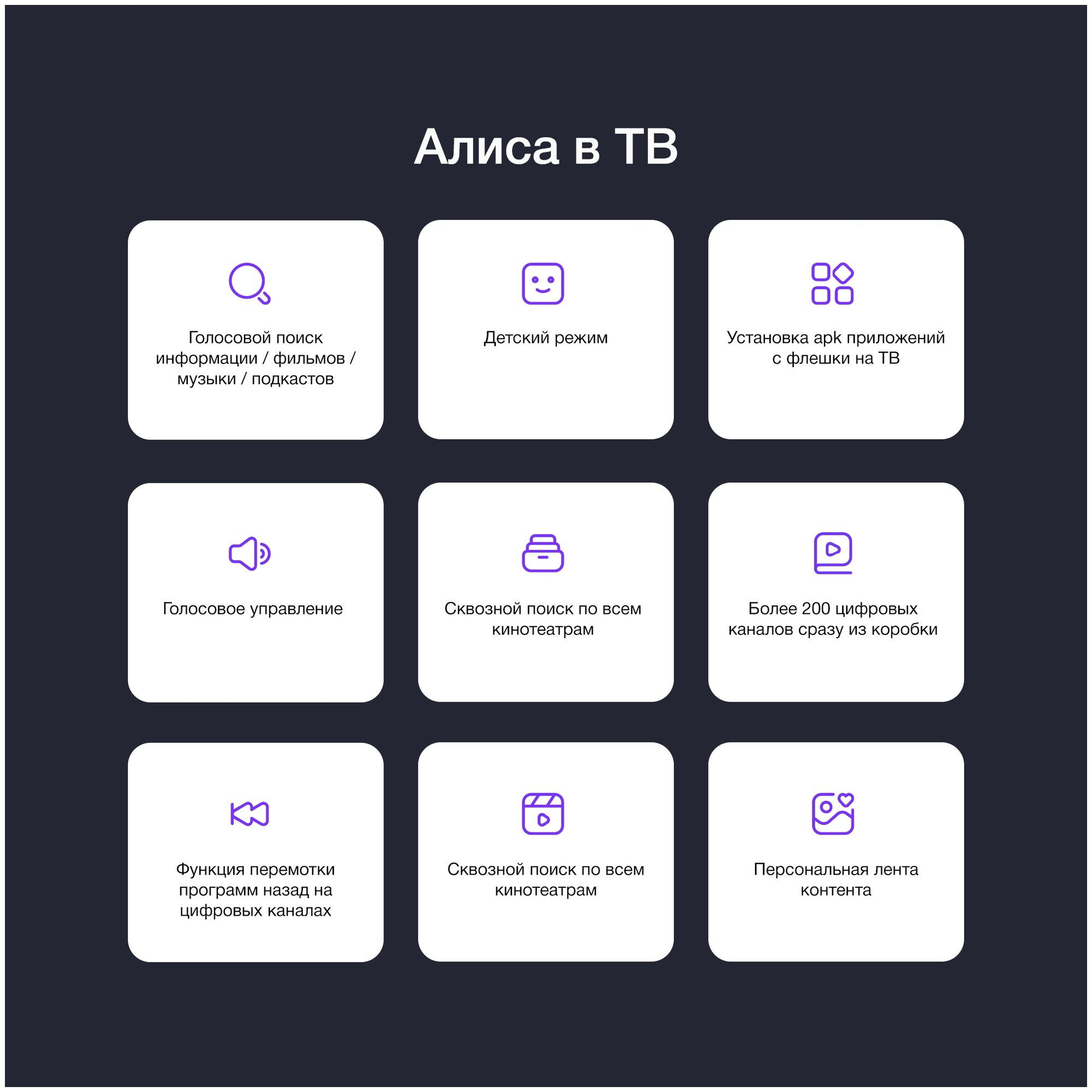 | Плюсы: | Низкая цена, 4к, вай фай, блютус, Алиса |