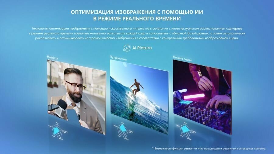 | Минусы: | Думал, на QLED чёрный цвет будет потемнее, но в темноте он всё равно заметно светится. На пульте нет кнопок быстрого переключения режима изображения и быстрого доступа к таймеру выключения. Приложение на смартфон также в этом не помогает. |