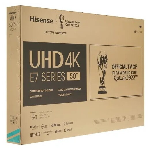 50" Телевизор Hisense 50E7HQ 2022 QLED, Quantum Dot, LED, HDR, OLED, черный