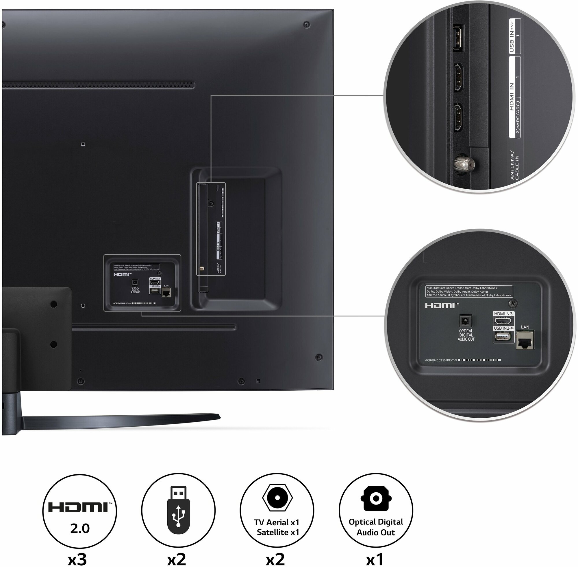 | Разъемы и интерфейсы | Ethernet - RJ-45 / вход HDMI x 3 / USB Type-A x 2 / слот CI/CI+ / выход аудио цифровой оптический |