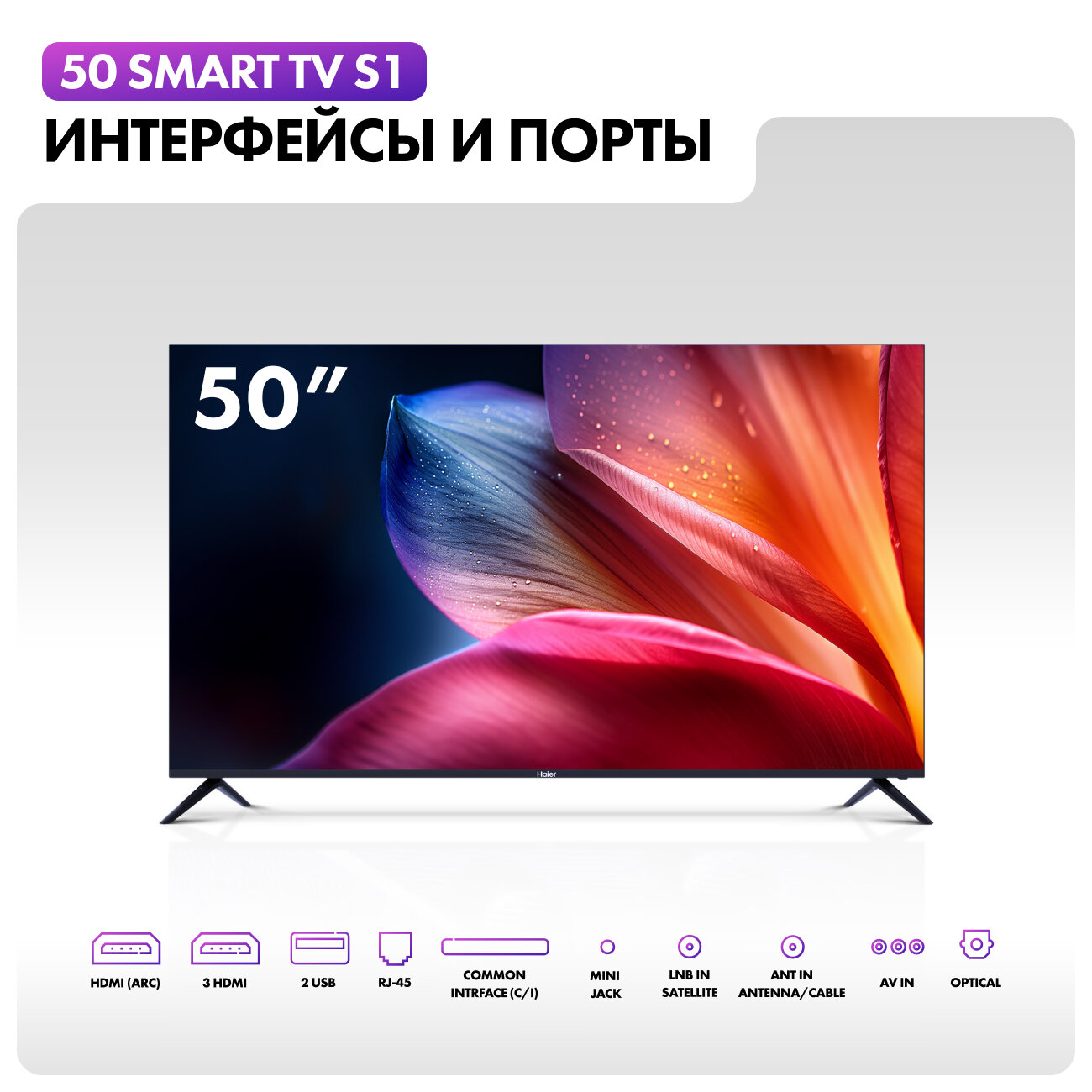 Телевизор Haier Smart TV S1, 50", 3840x2160, Dvb-t/t2/c/s2, Hdmi 3, USB 2, Smart TV, чёрный Haier . интересное:
