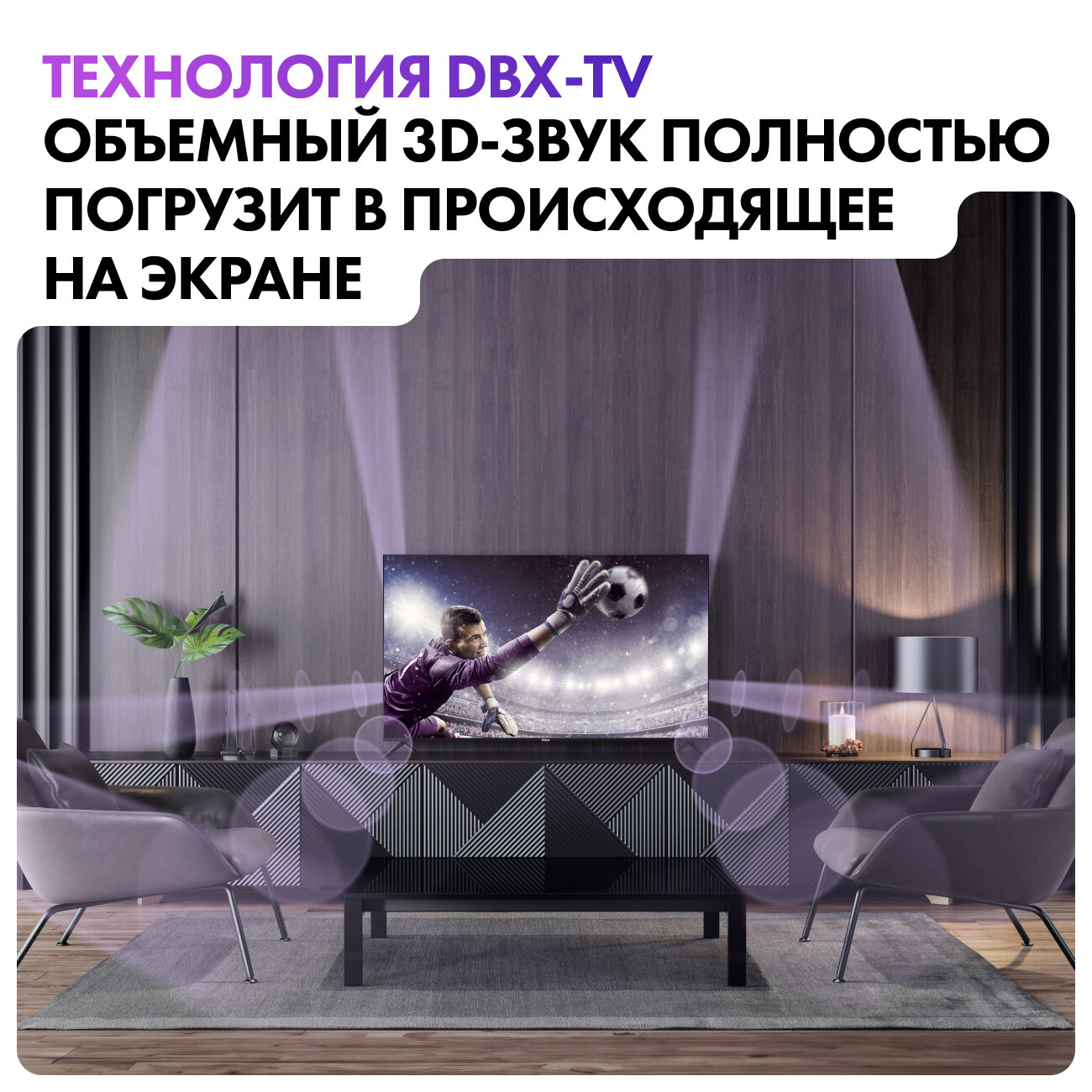 Большой, яркий, звук сносный, вай фай, андройд тв, блютус