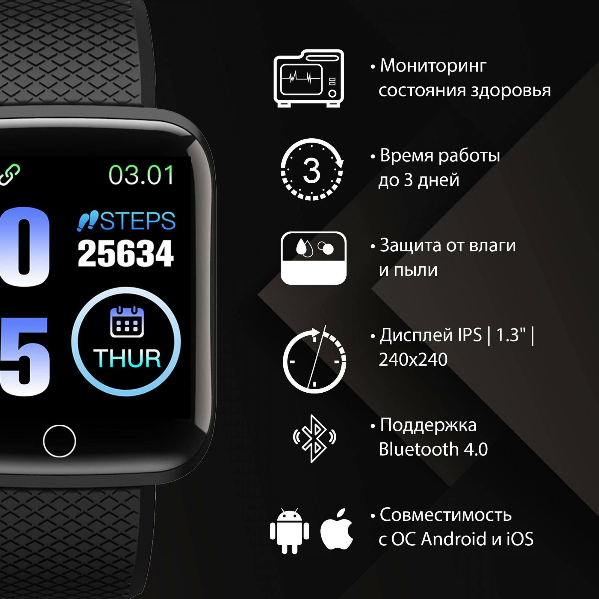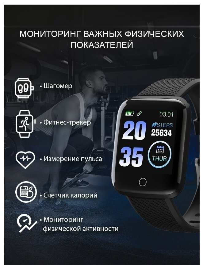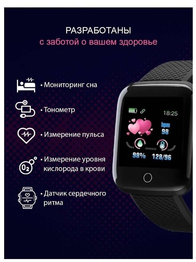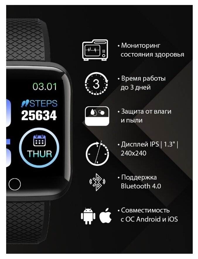 -шагомер -датчик определения сердечного ритма -фитнес-трекер -мониторинг физической активности -измерение кислорода в крови -уведомление о вызовах и сообщениях и другое |