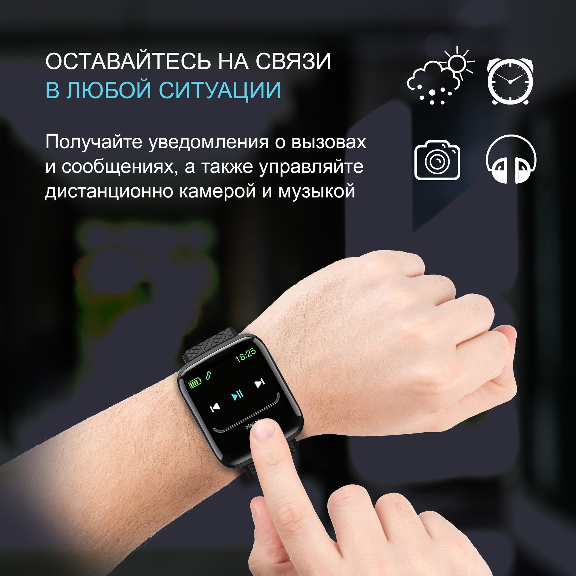 | Плюсы: | Полноценные часы, отображают дата, время, батарею, шаги, все необходимые функции для быстрого просмотра не касаясь телефона, вот детально уже можно все увидеть в приложении. |