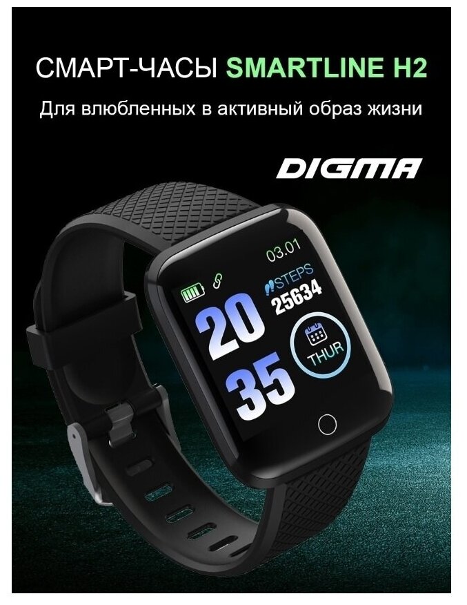 Смарт-часы DIGMA Smartline H2 черный (h2b)