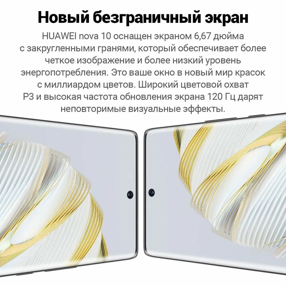 Смартфон HUAWEI Nova 10 8/128 ГБ RU, Dual nano SIM, сияющий черный