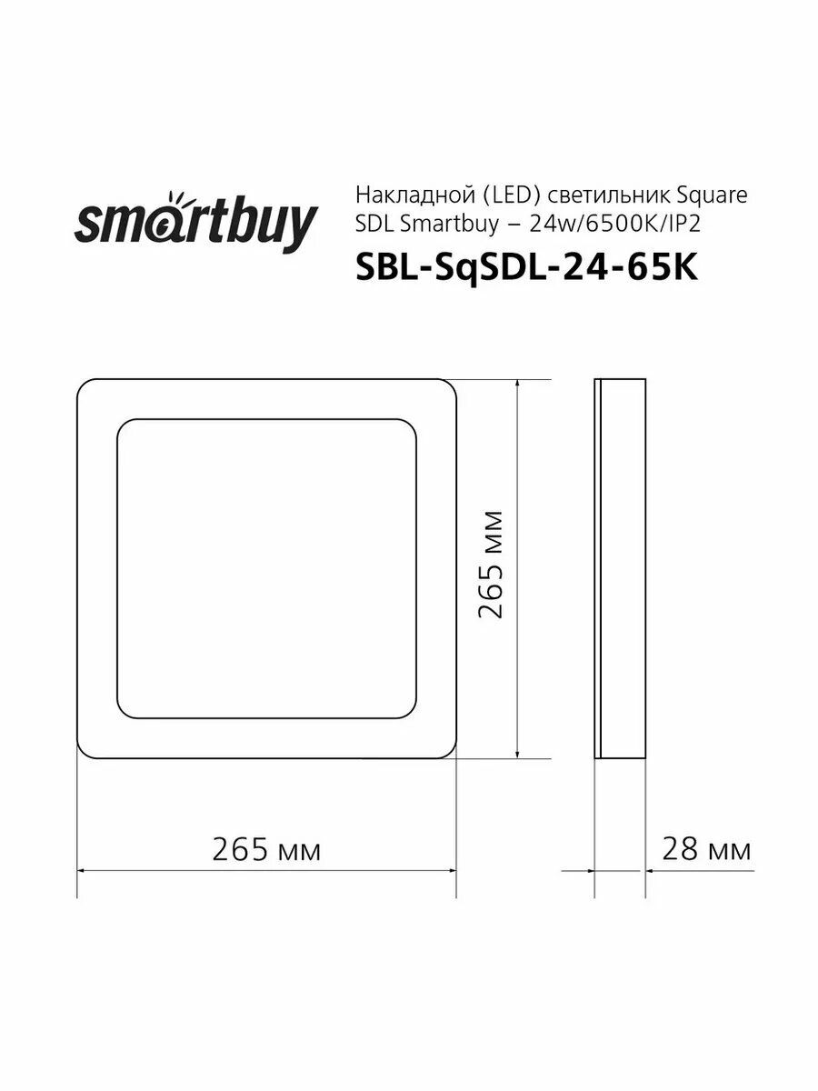 Накладной светильник Smartbuy LED Square SDL 24w/6500K/IP20 SBL-SqSDL-24-65K 16052359