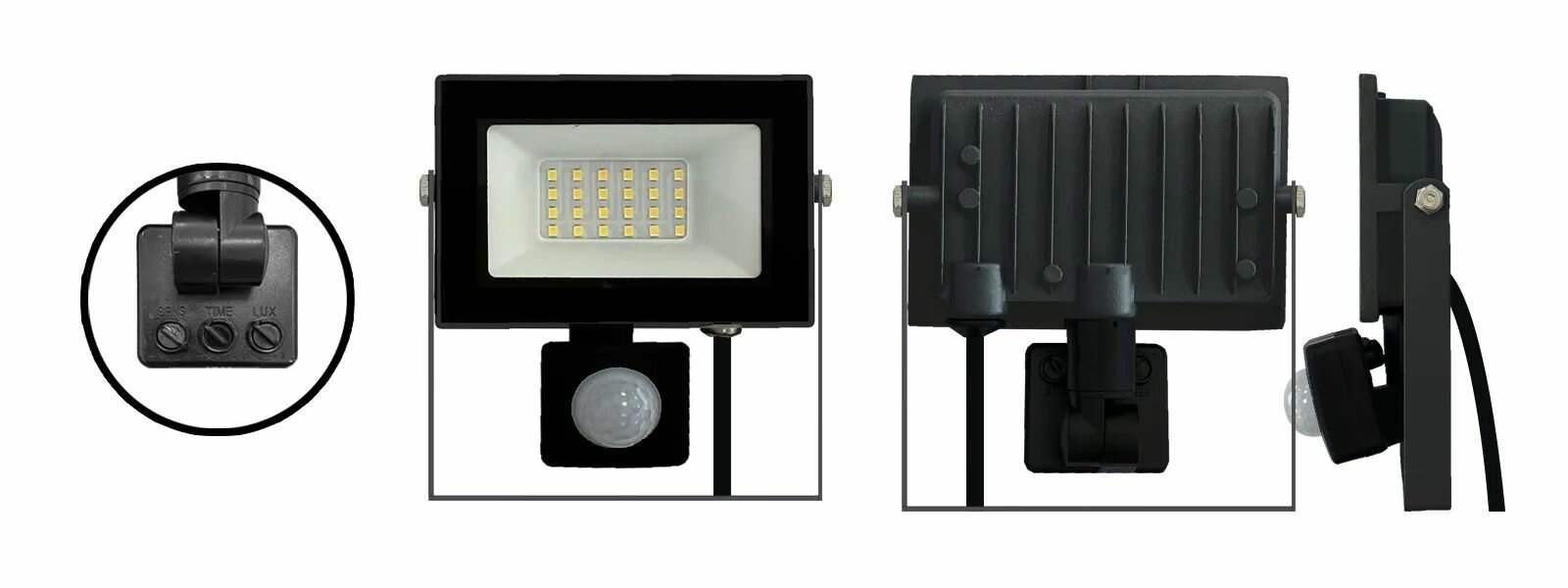 Прожектор LED Сенсор 10W/4200К Чёрный 220-240В 850Лм 122x150x45мм с датчиком движения и освещённости Foton Lighting, уп. 1шт