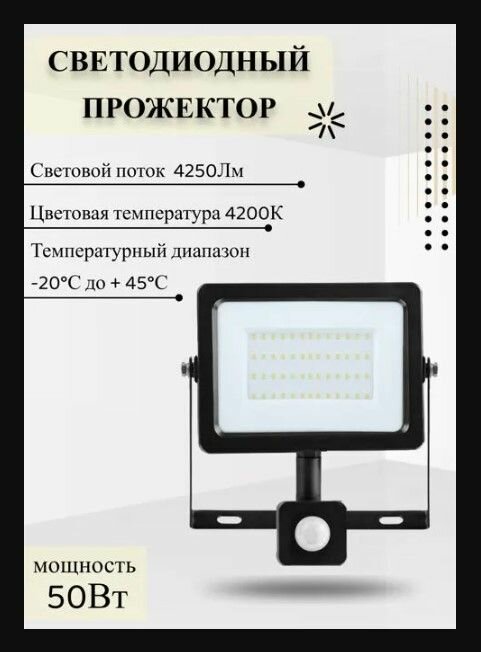 LED прожектор Сенсорный с датчиком движения 50Вт 220В 4200К Дневной белый 4250Лм IP65 Foton Lighting, уп. 1шт