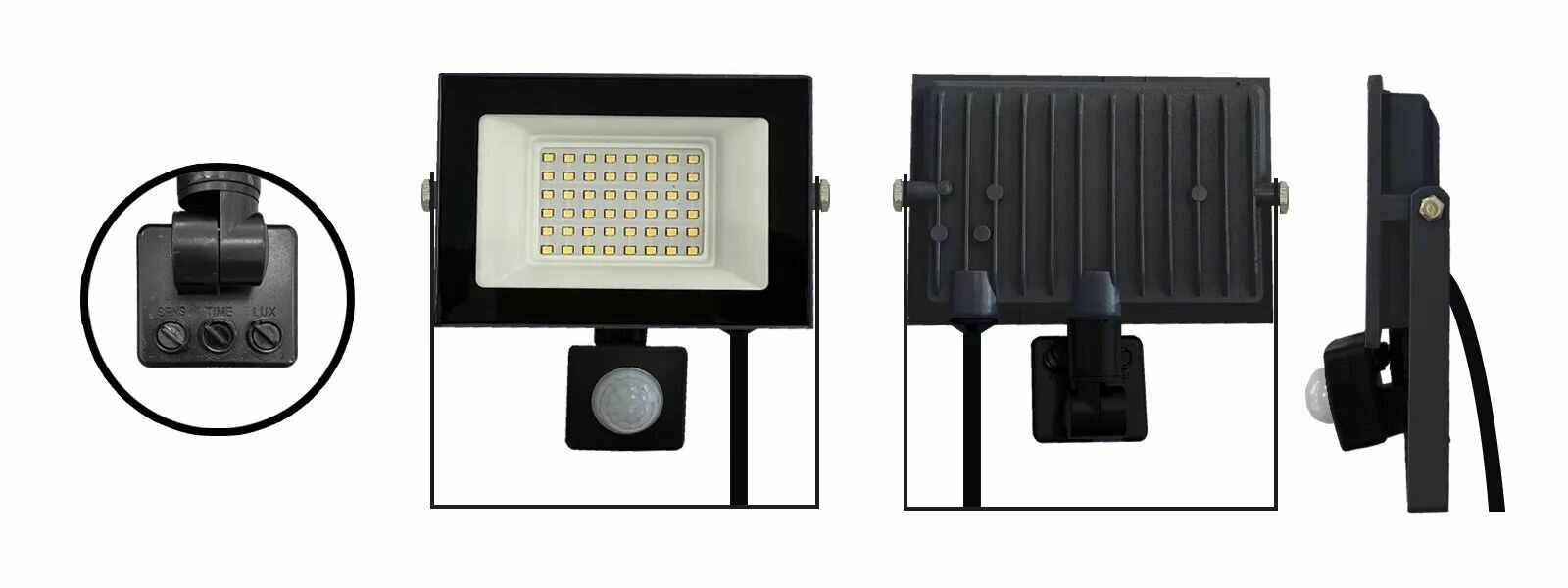 Прожектор LED Сенсор 30W/4200К Чёрный 220-240В 2550Лм 122x150x45мм с датчиком движения и освещённости Foton Lighting, уп. 1шт