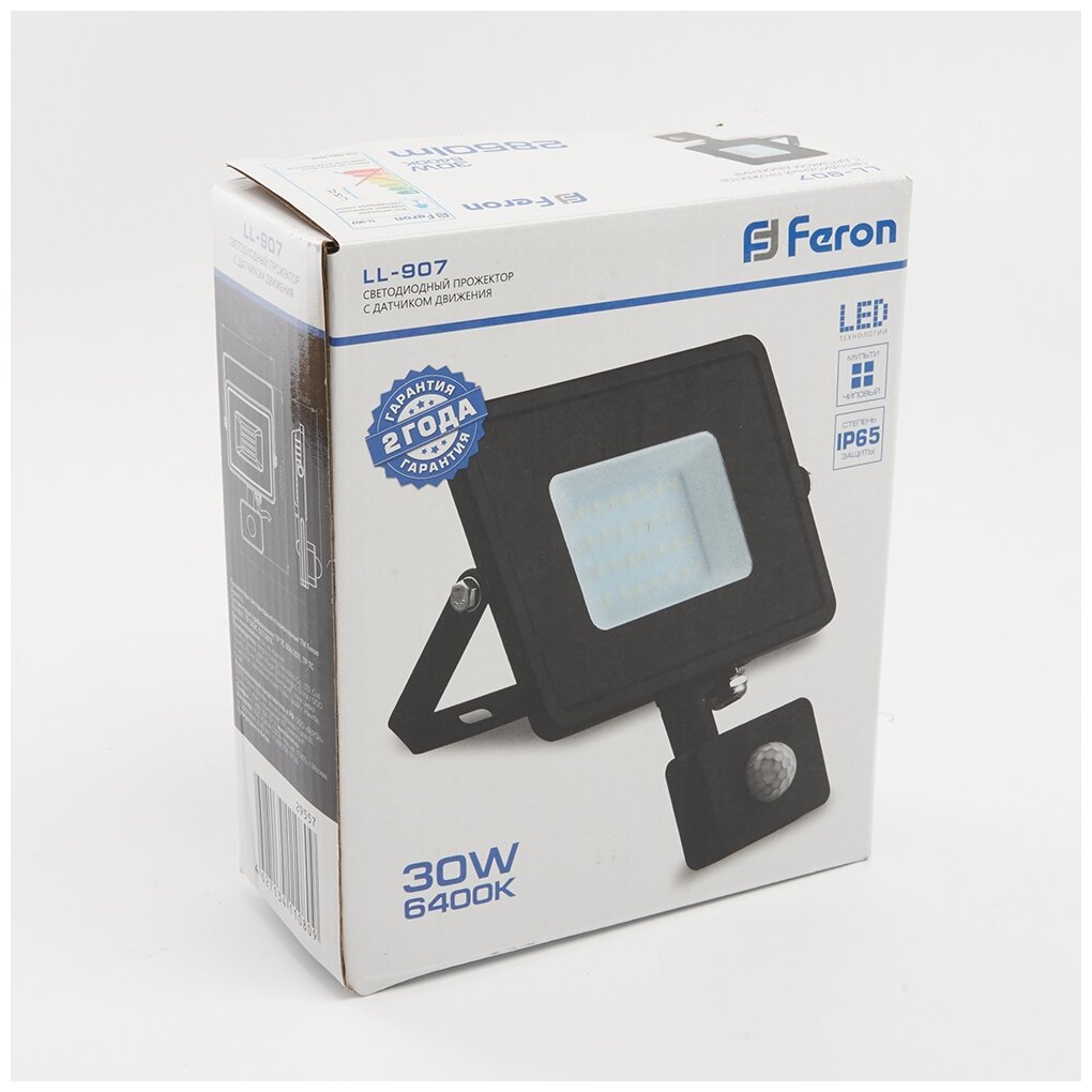 Feron LL-907 Светодиодный прожектор с датчиком 30W 6400K 230V черный IP44 153*178*54мм 29557 .
