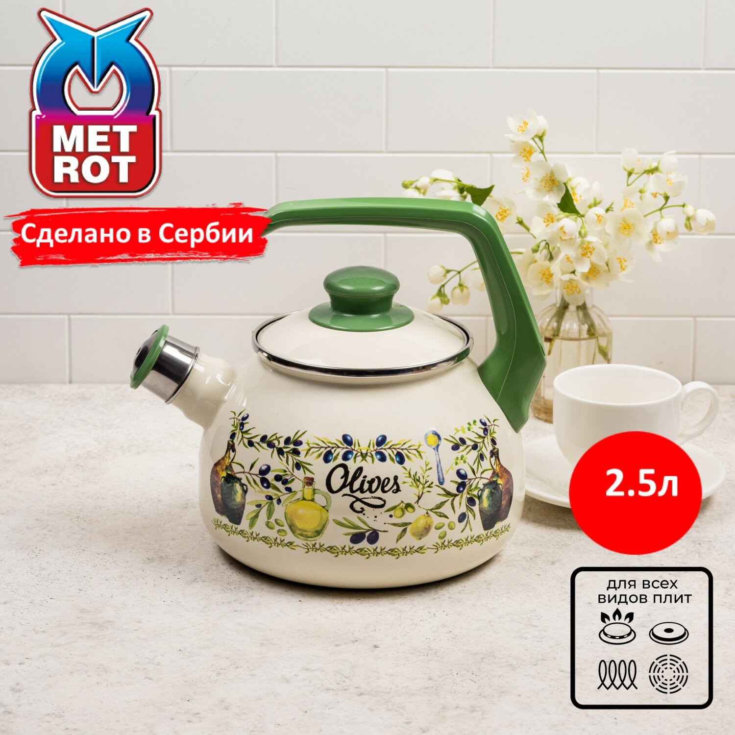 Чайник metrot олива 2,5л эмалированная сталь со свистком